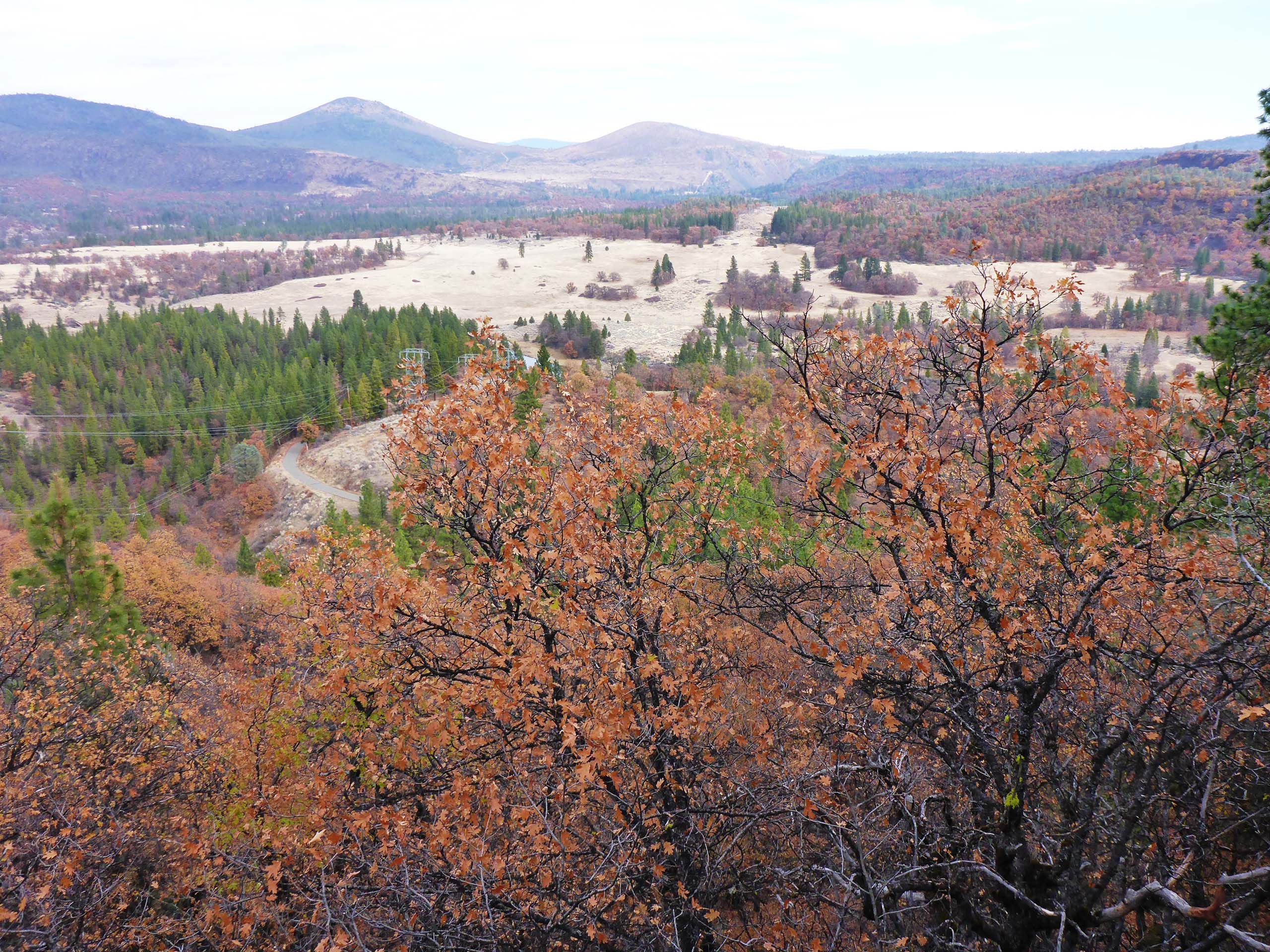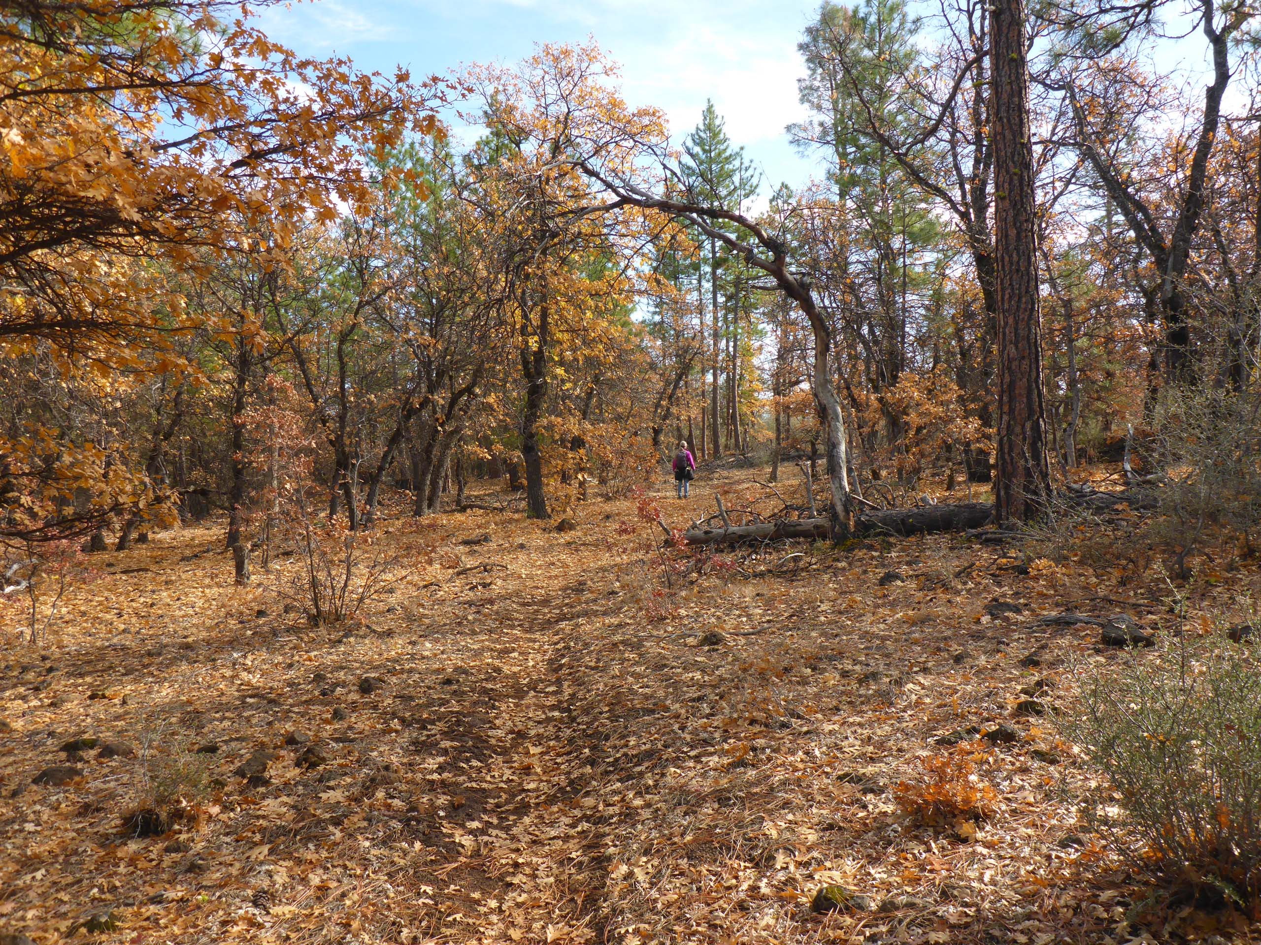 From the highway, the trail slowly ascends to the top of a bench, levels out for a distance, and then descends on the other side to Baum Lake. The majority of the trail goes through Brewer’s oak woodland, spotted here and there with ponderosa and gray pines.