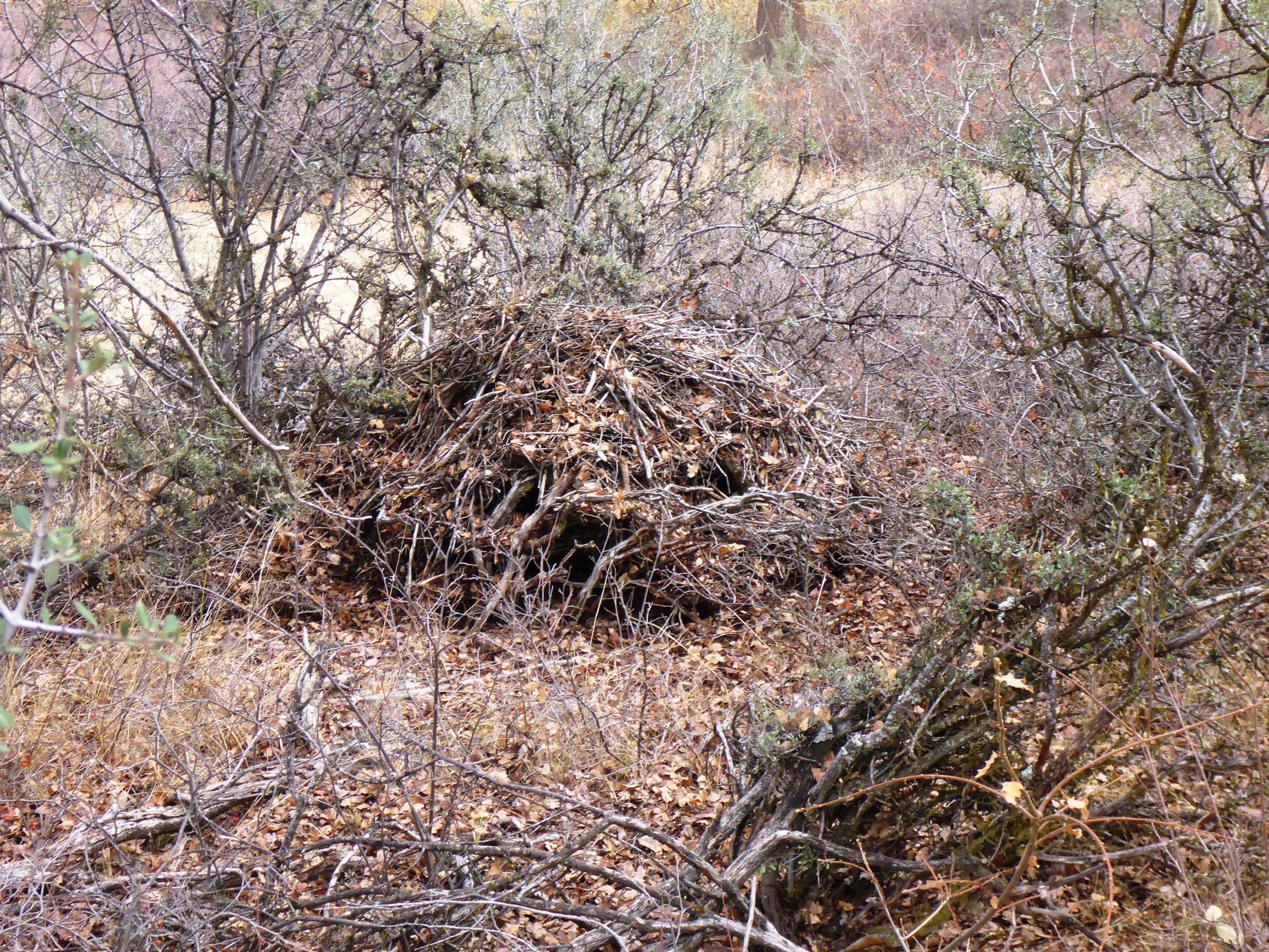 If there were any flowers in bloom, we did not see them, but there was plenty to wonder at: beautiful fall foliage, dried seeds and fruits, and wood rat lodges!