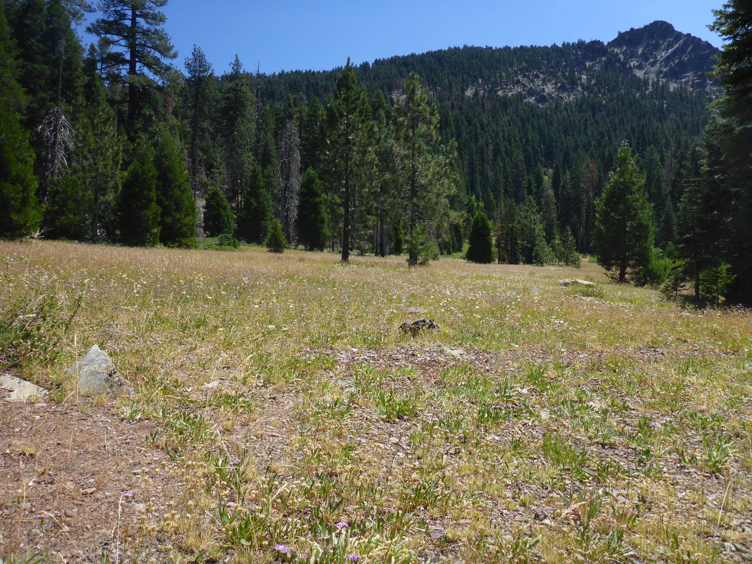 One of several meadows on Black Rock Lake Trail. Black Rock Mountain at far right. August 2, 2020. Photo by Don Burk.