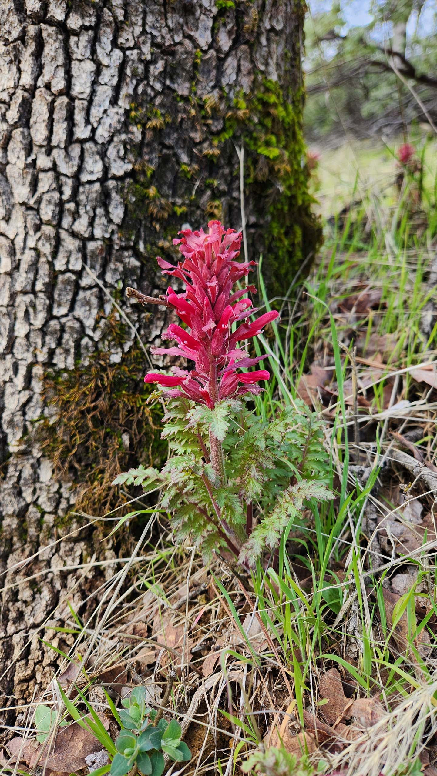 California pipevine, Aristolochia californica (left), and Indian-warrior, Pedicularis densiflora, (right).