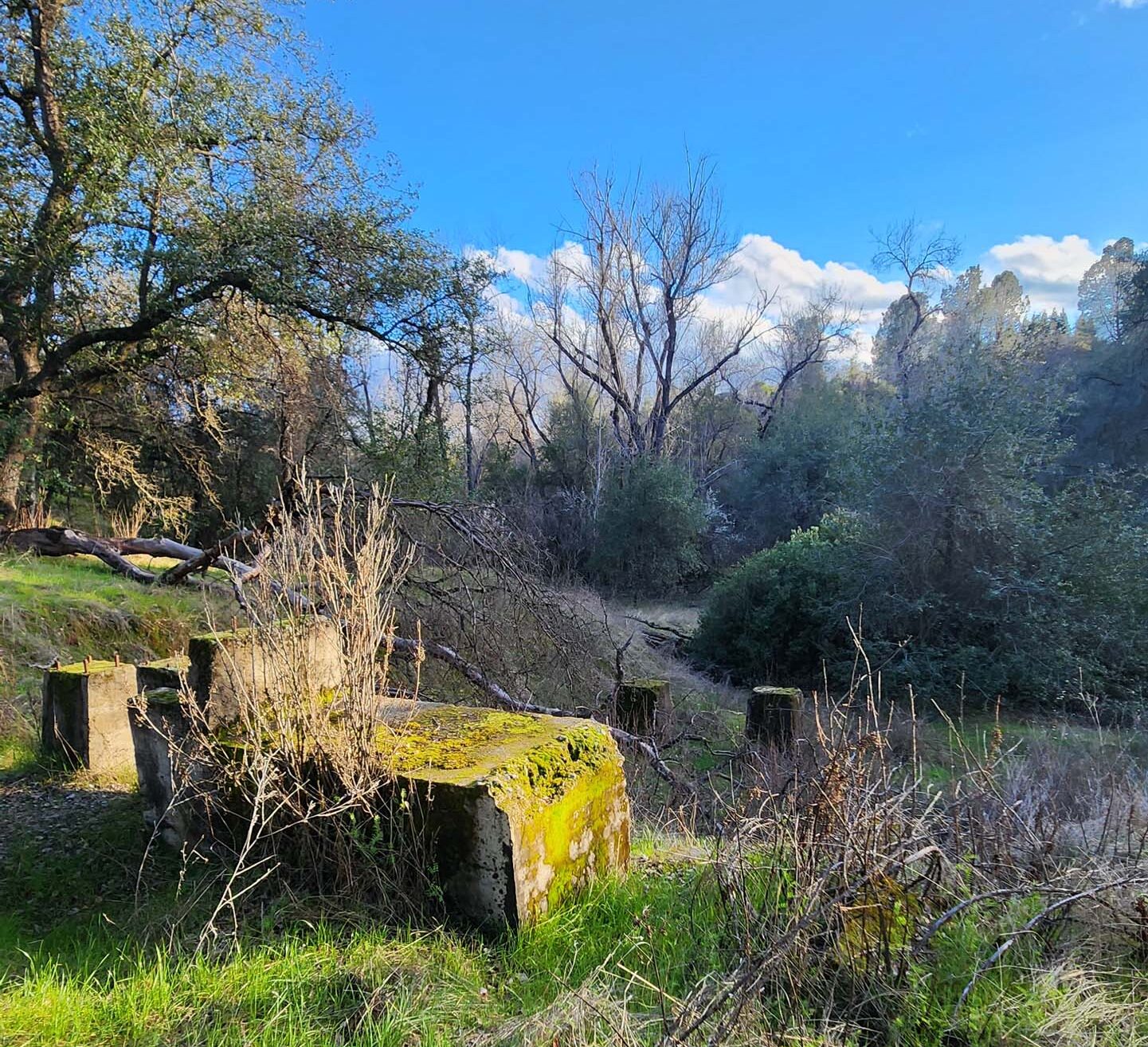 Concrete remnants of the stamp mill once used by Blue Gravel Mine in West Redding to crush quartz, separating out the gold. Photo taken February 9, 2025, by Juliet Malik.
