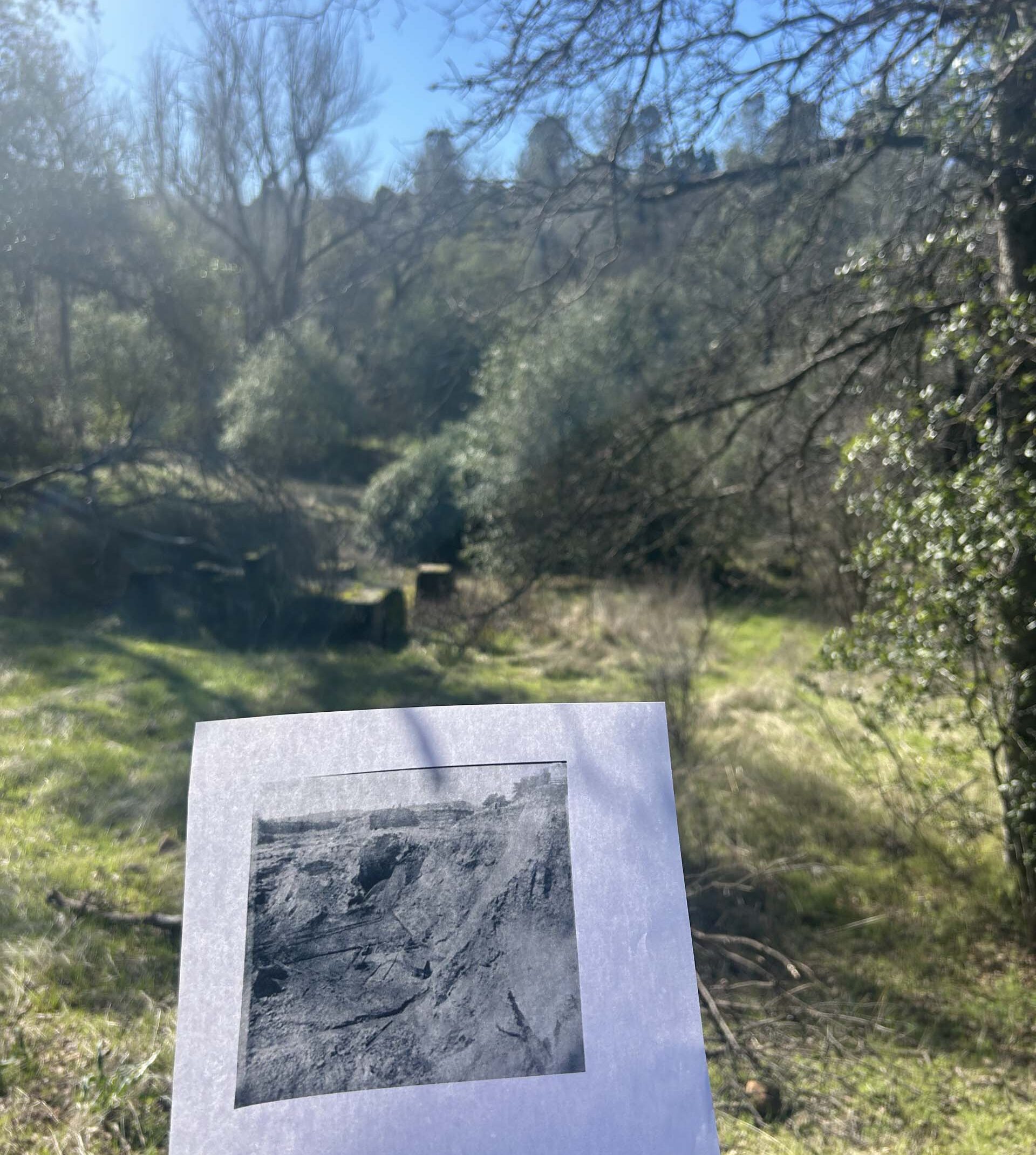 A 1930s photo of the Blue Gravel Mine area of West Redding shows just how much has changed over the past 90 years. Photo taken February 9, 2025, by Sarah Risher.