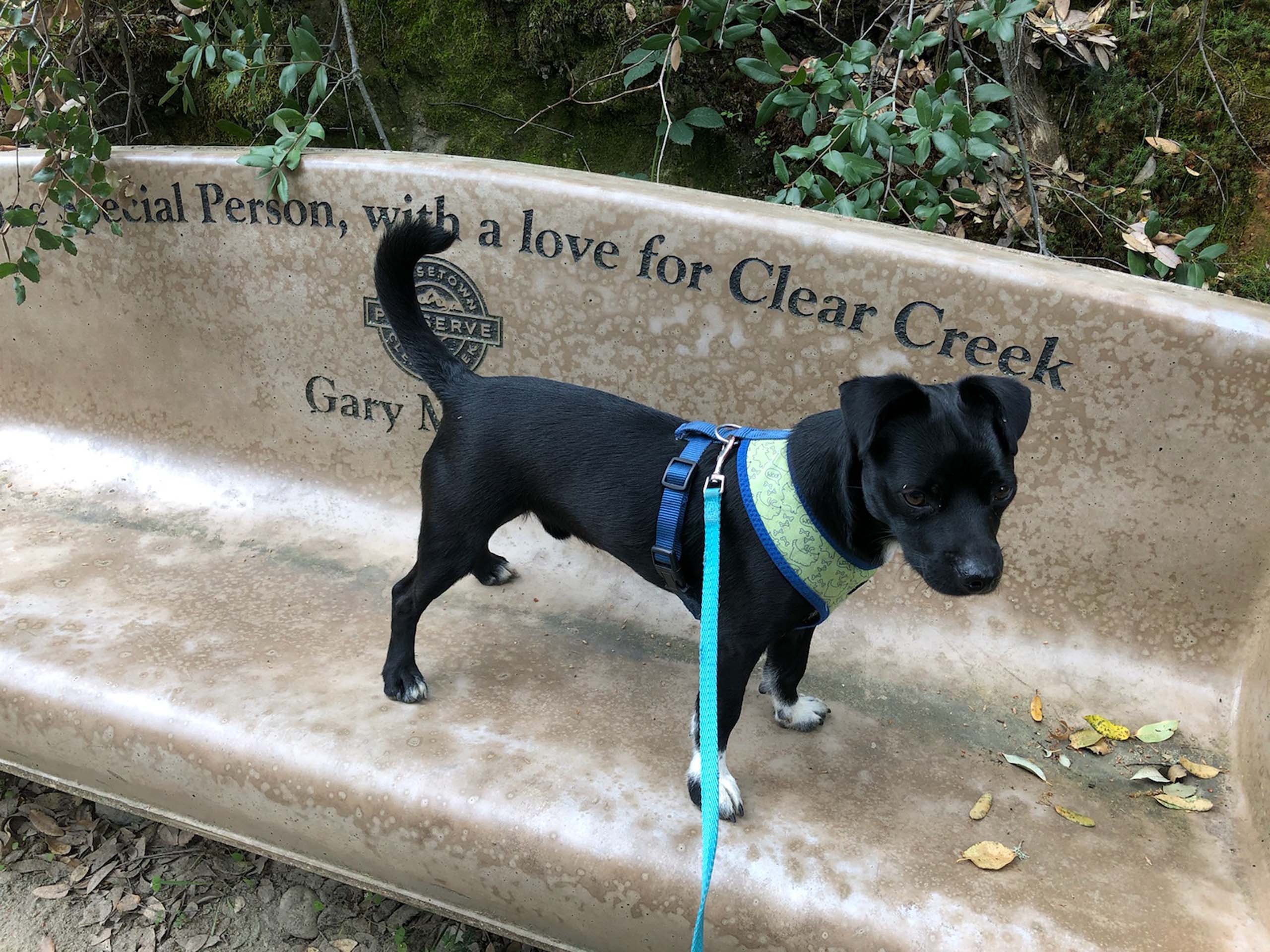 If you are sure-footed, you can continue to explore this rocky and sometimes steep path that eventually returns to the main trail. Otherwise, return to the paved walkway that soon turns into an easily traversed dirt trail. My pooch, Baxster, and I followed the trail downstream for a little over two miles before retracing our steps.