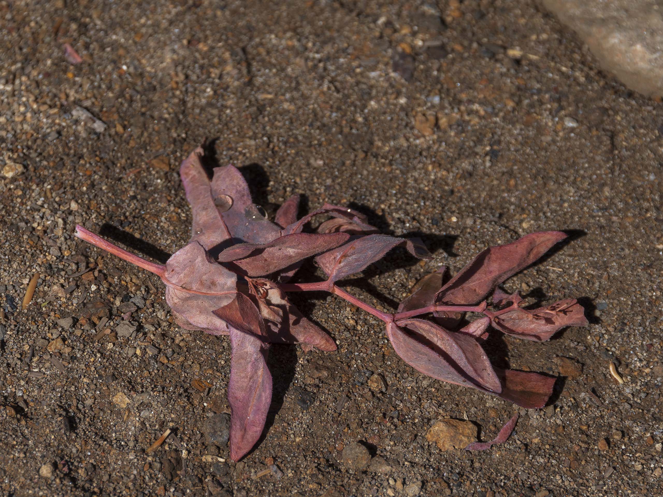 Rainstorm-collected Davis' knotweed fragments. G. Lockett.