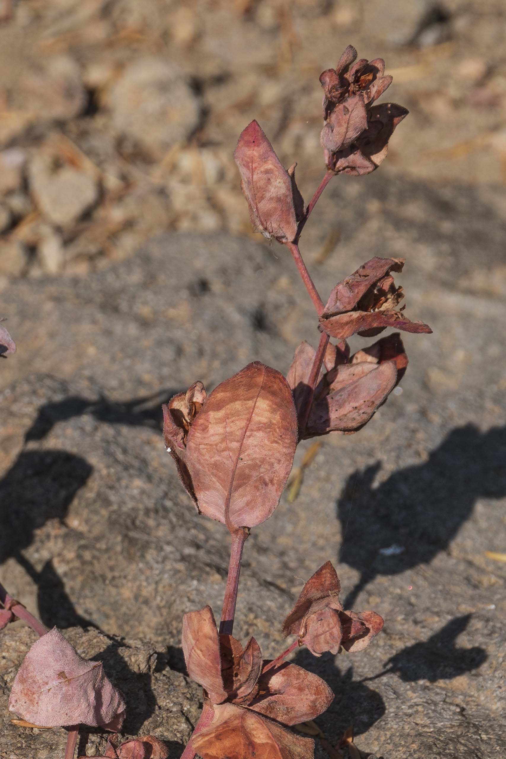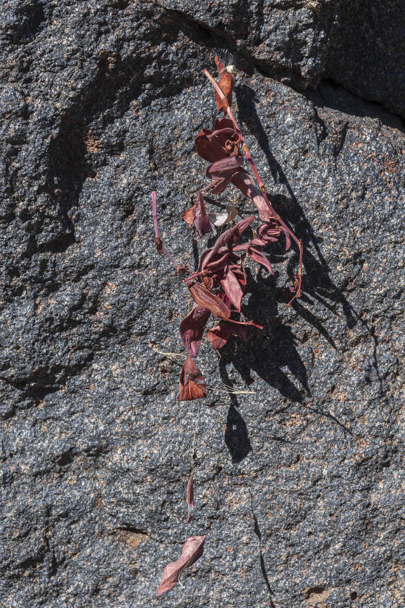 My second clue was a stem that I found on the trail after a rainstorm. The stem had many empty receptacles, but two achenes were still attached at the second node. In essence, Davis’ knotweed uses the physical movement of broken stems as one mode of seed dispersal. This was surprising to me. It is not a tumbleweed. It is a very successful rollerweed.
