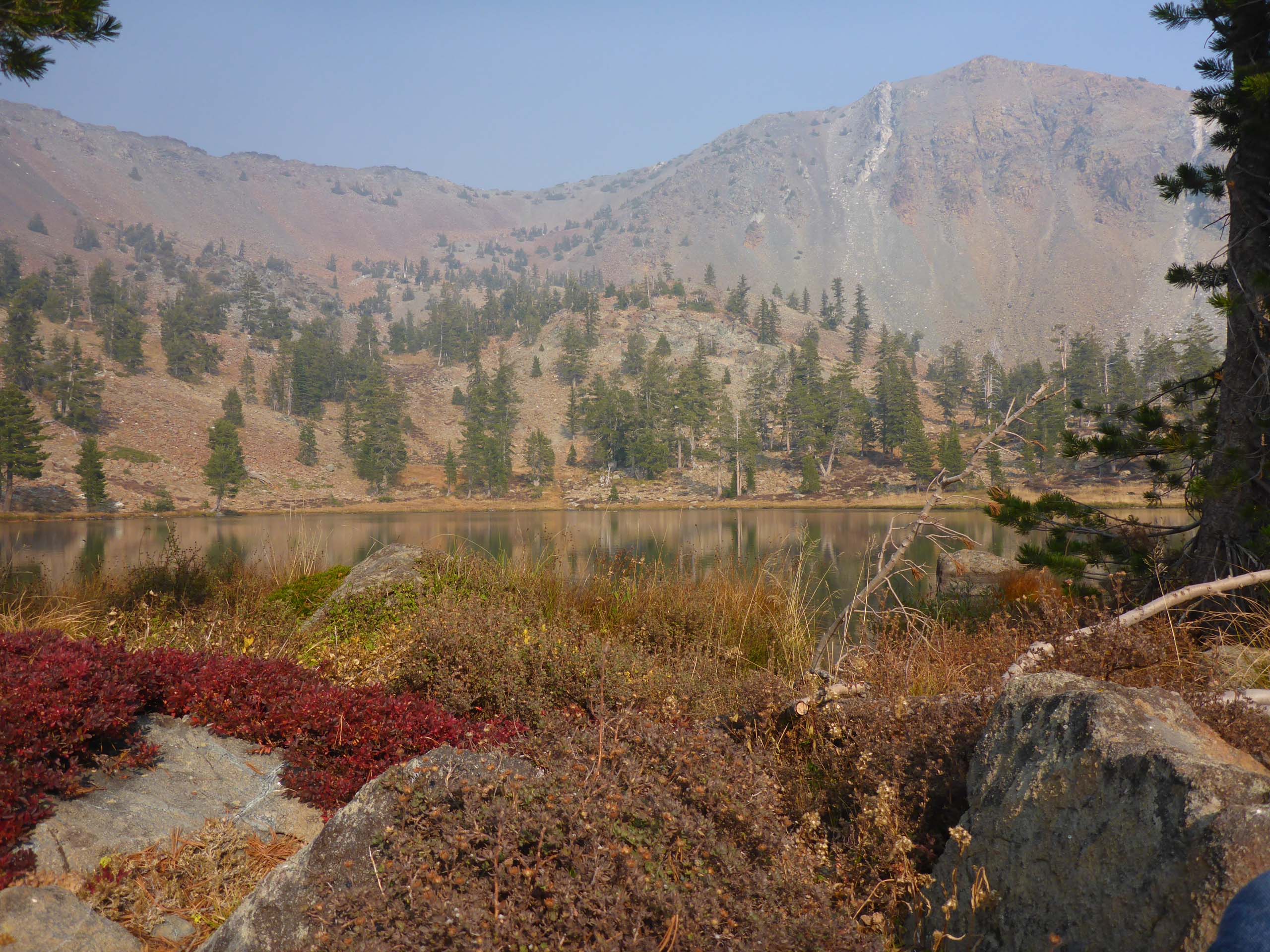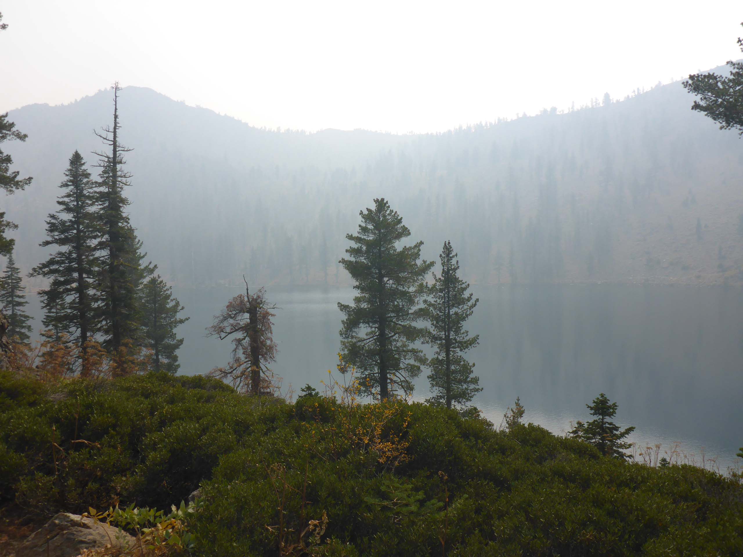 To see Lower Deadfall Lake, we would have had to take Deadfall Lakes Trail for a short way. We skipped that and went straight to Middle Deadfall Lake, which was smoke enshrouded.