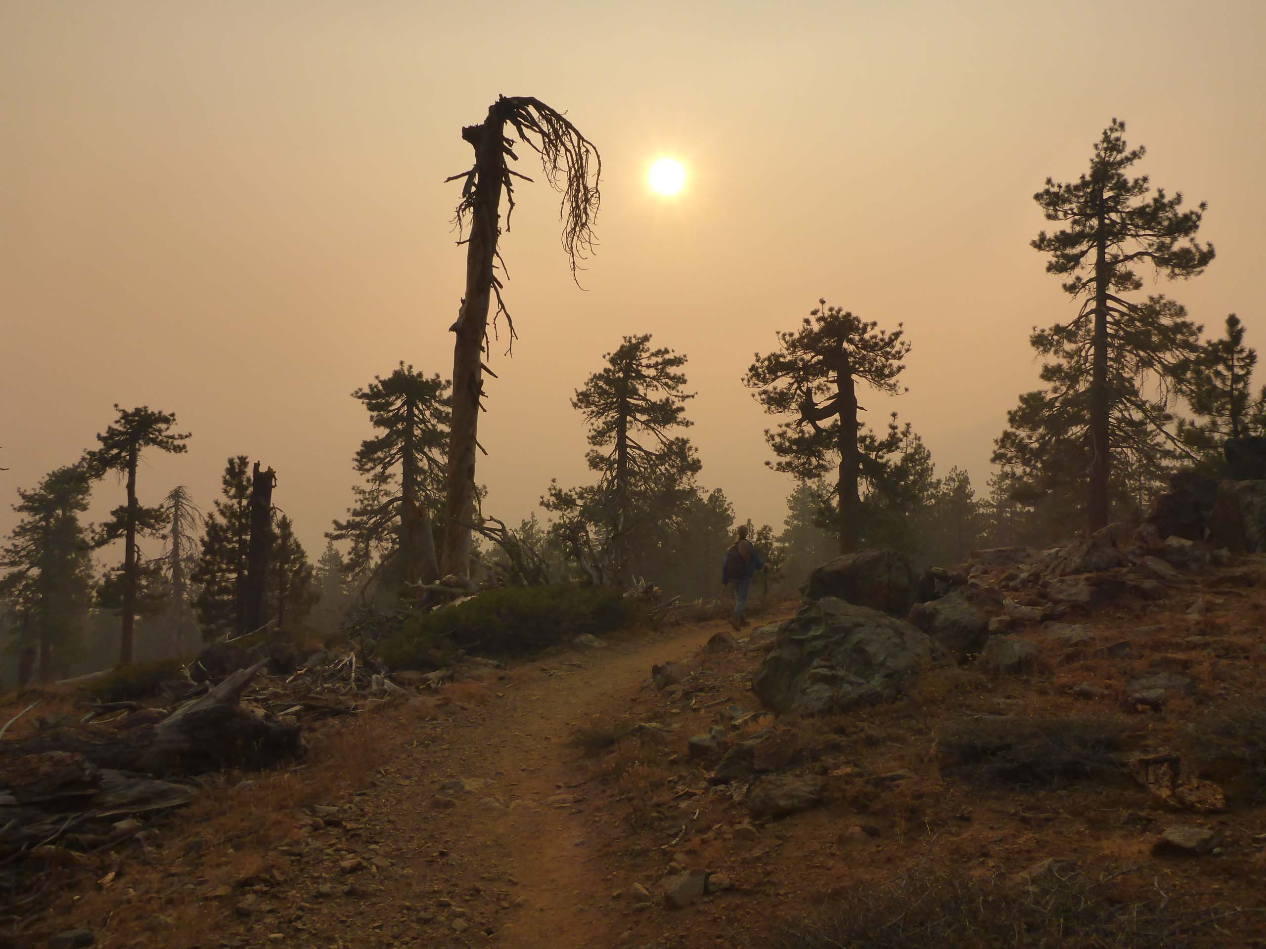 On the PCT on to Deadfall Lakes, Shasta-Trinity National Forest, on a smoky Sunday, October 4, 2020. Photo by Don Burk.