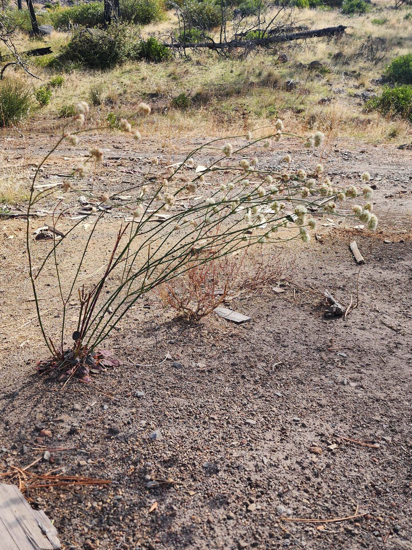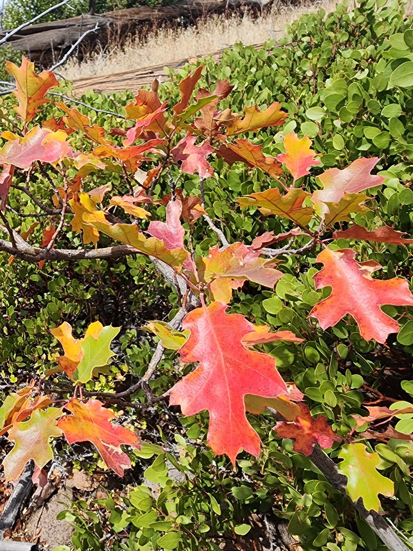 The dominant shrub in much of the burned sections of Devil’s Half Acre was the fire-follower, Baker’s globe mallow, Iliamna bakeri. We saw masses of these plants, which would be a very pretty sight when they bloom in the summer. Photo taken in Devil’s Half Acre on October 12, 2025, by Don Burk.