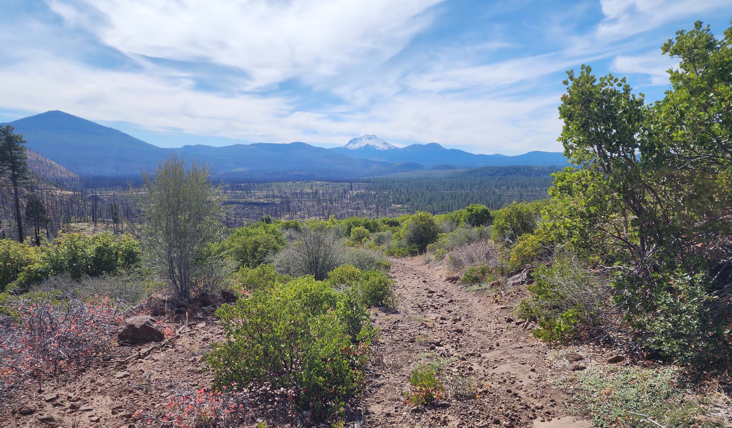 The PCT climbing above Devil’s Half Acre to Hat Creek Rim. Mt. Lassen on the horizon to the south.