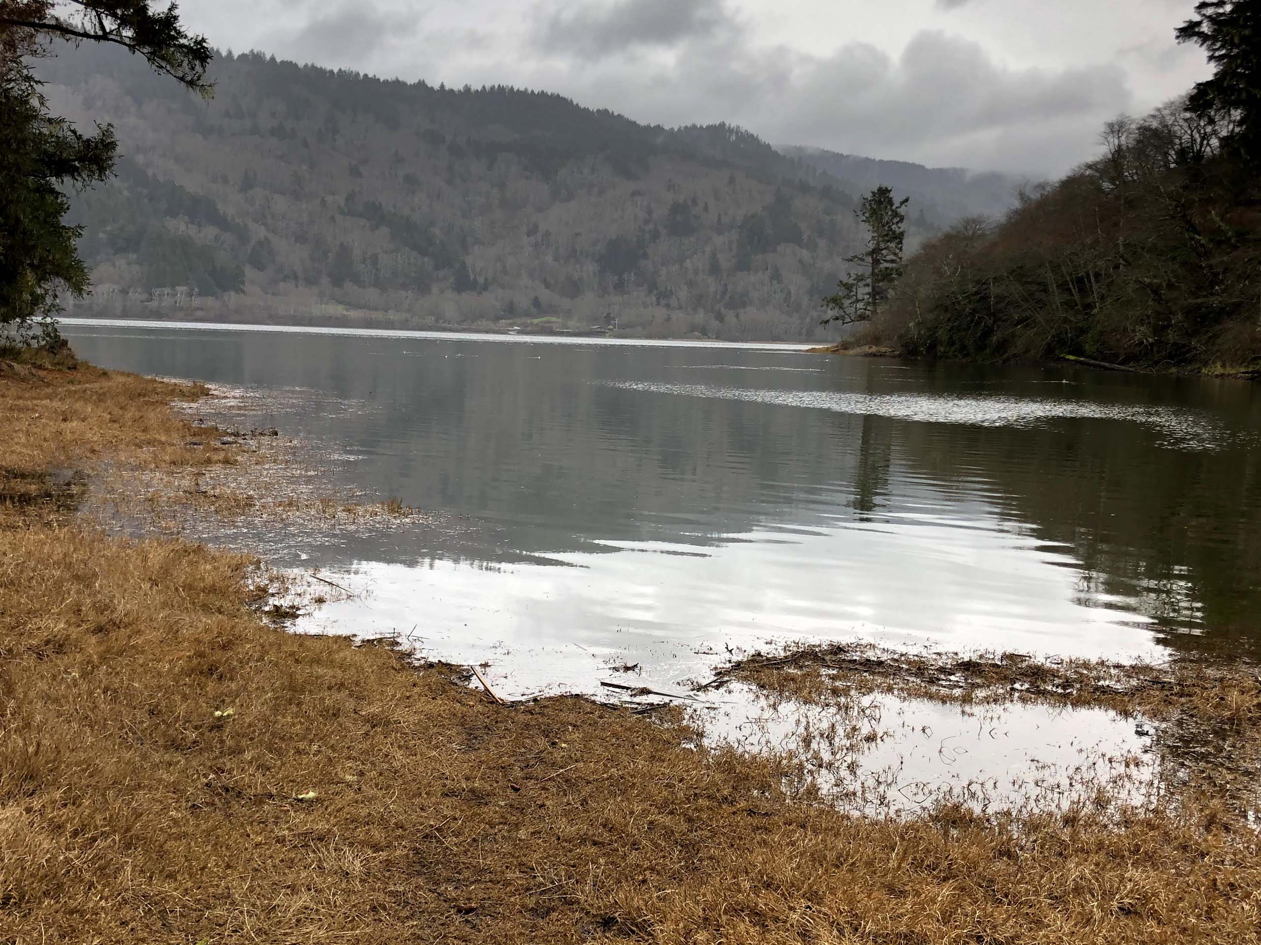 About halfway along the 3.2-mile trail, a spur takes off to the left and leads to Sharp Point (which is visible from the beach at the beginning of this hike). We’ll explore this side trail and Sharp Point the next time we do this hike. Farther on, we did explore another spur trail that took us down to a beautiful campsite on the shore of Stone Lagoon. The campsite is only accessible to hikers and kayakers.