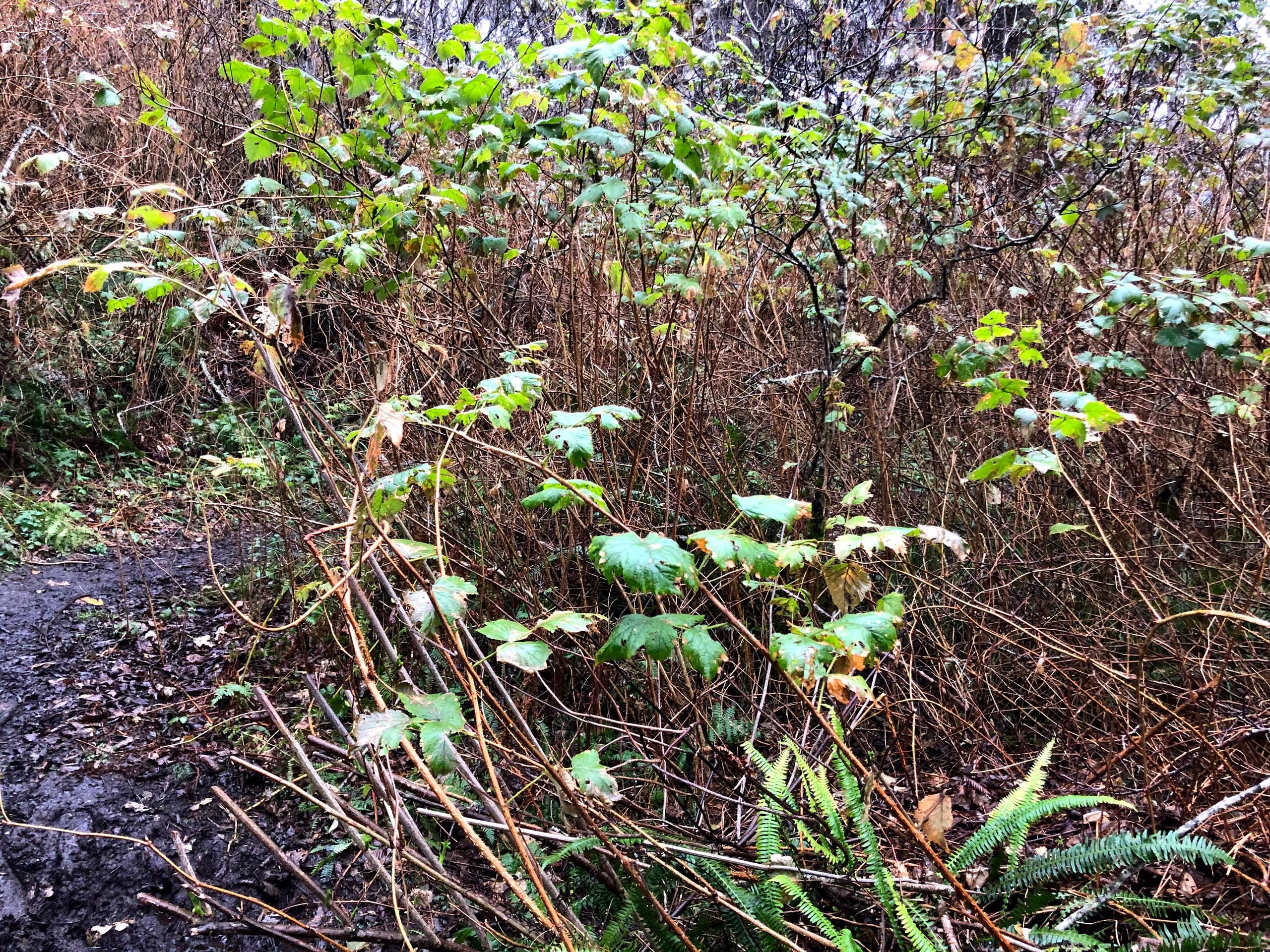 There are several types of ferns along the trail, but what impressed me the most was the sheer number of salmonberry shrubs. The bears must be in heaven when these plants are in fruit!