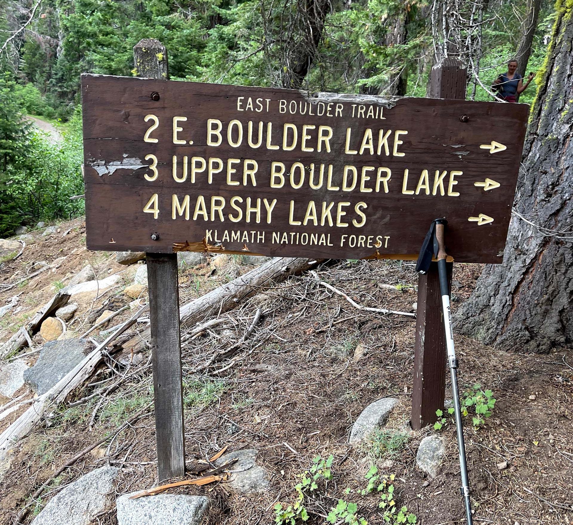 Driving directions: The trailhead for East Boulder Lake is reached by driving ~8 miles out of Callahan in a southerly direction on mostly dirt roads. Once you get to Callahan, take the paved road just west of the bridge that spans the East Fork of the Scott River. This paved road soon becomes a dirt road and is signed as Forest Service Road 40N16. Look for signs to McKeen Divide and drive ~2 miles. When you come to Forest Service Road 40N17, take it and drive ~3 miles to find Forest Service Road 39N63, which is signed for East Boulder Lake. Drive ~2 miles on this road to arrive at the trailhead. ~Chris Harvey