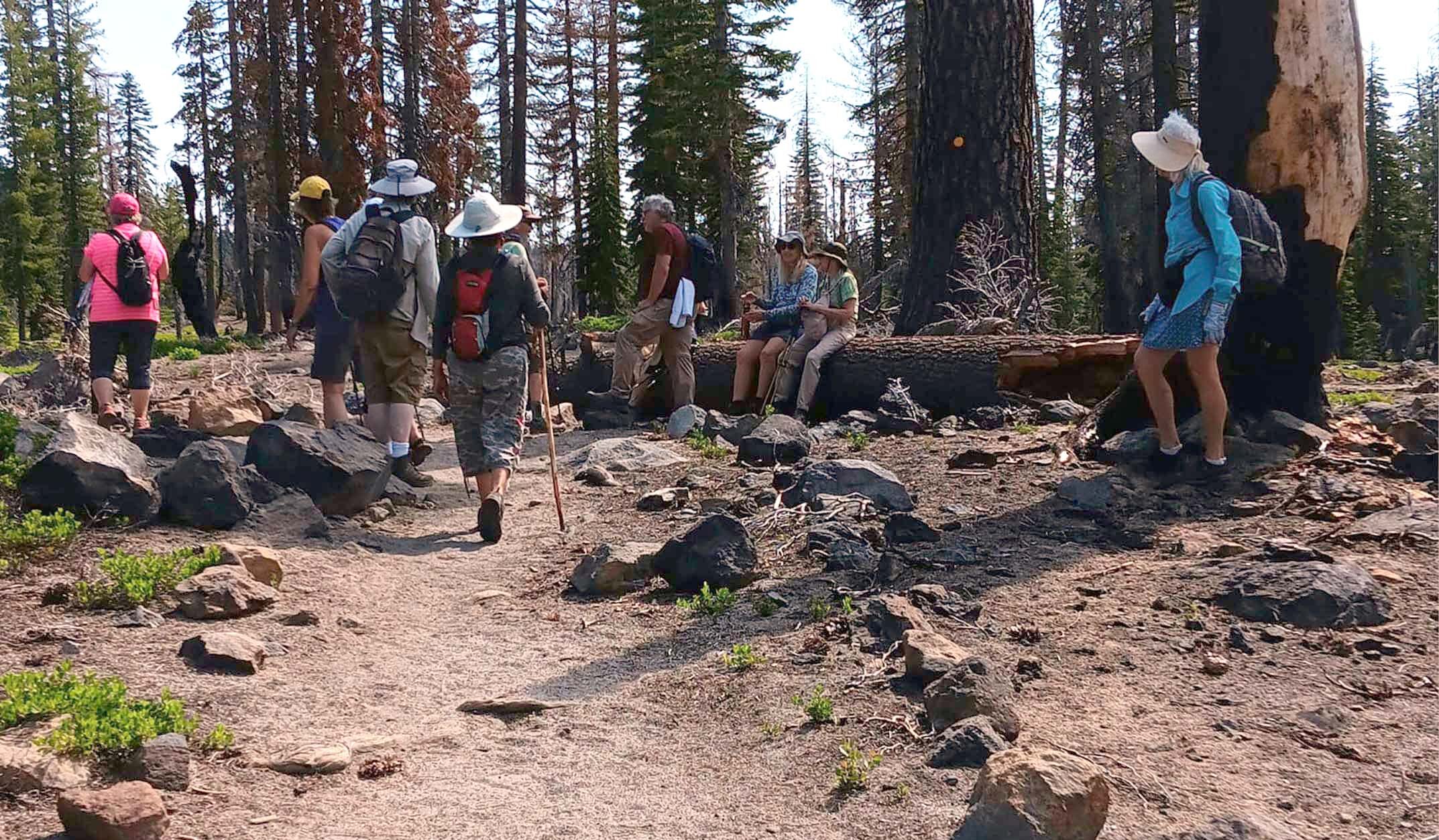 For this adventure to Lassen Volcanic National Park, Shasta Chapter CNPS and Shasta Environmental Alliance co-led a group of 13 hikers from Summit Lake to Echo Lake. With temperatures reaching 115 degrees in Redding, it was a great day to get out of the valley!