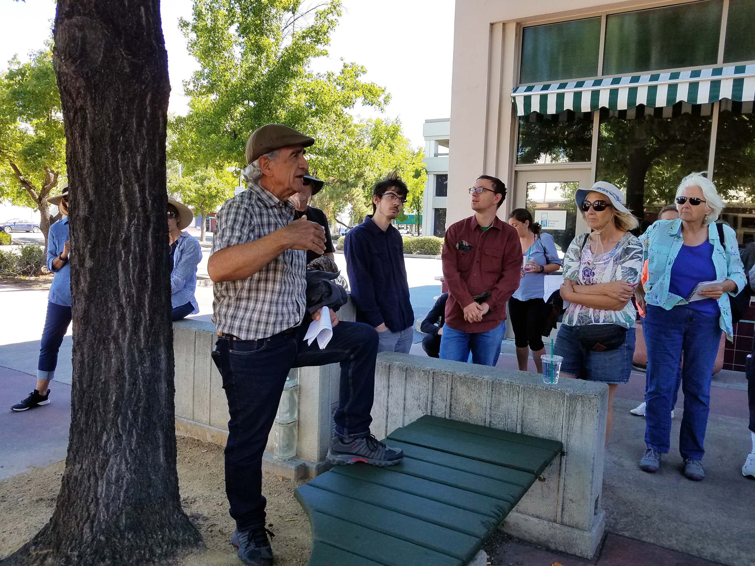 Rico Montenegro leading an urban tree identification walk in Redding on June 8, 2019.