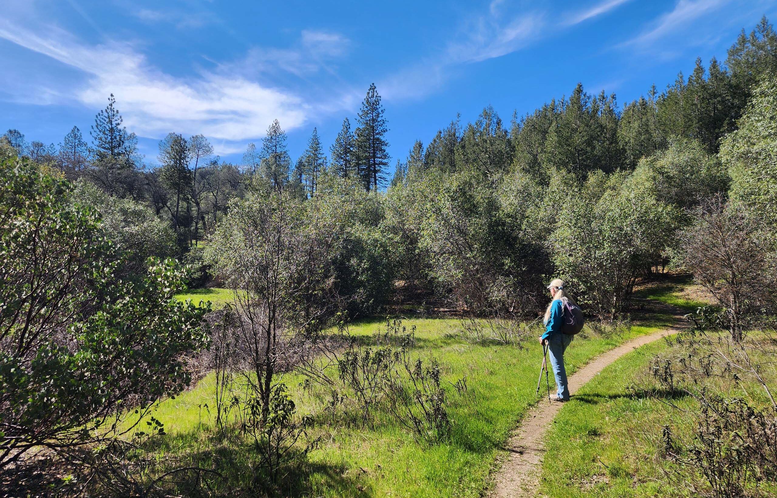 Sacramento River Bend Recreation Area, in northern Tehama County, is always a great hiking destination, and a particularly lovely area in which to see early-spring wildflowers, which is what we set out to do on the last Sunday before the vernal equinox. Imagine our shock and dismay to find that we were the fourteenth car to park in the small Oak Slough Trailhead parking lot off of Jellys Ferry Road! Apparently, half the county had exactly the same idea! No matter—we would just hike off trail. That’s one of the nicest things about this BLM recreation area: off-trail exploration is not at all discouraged.