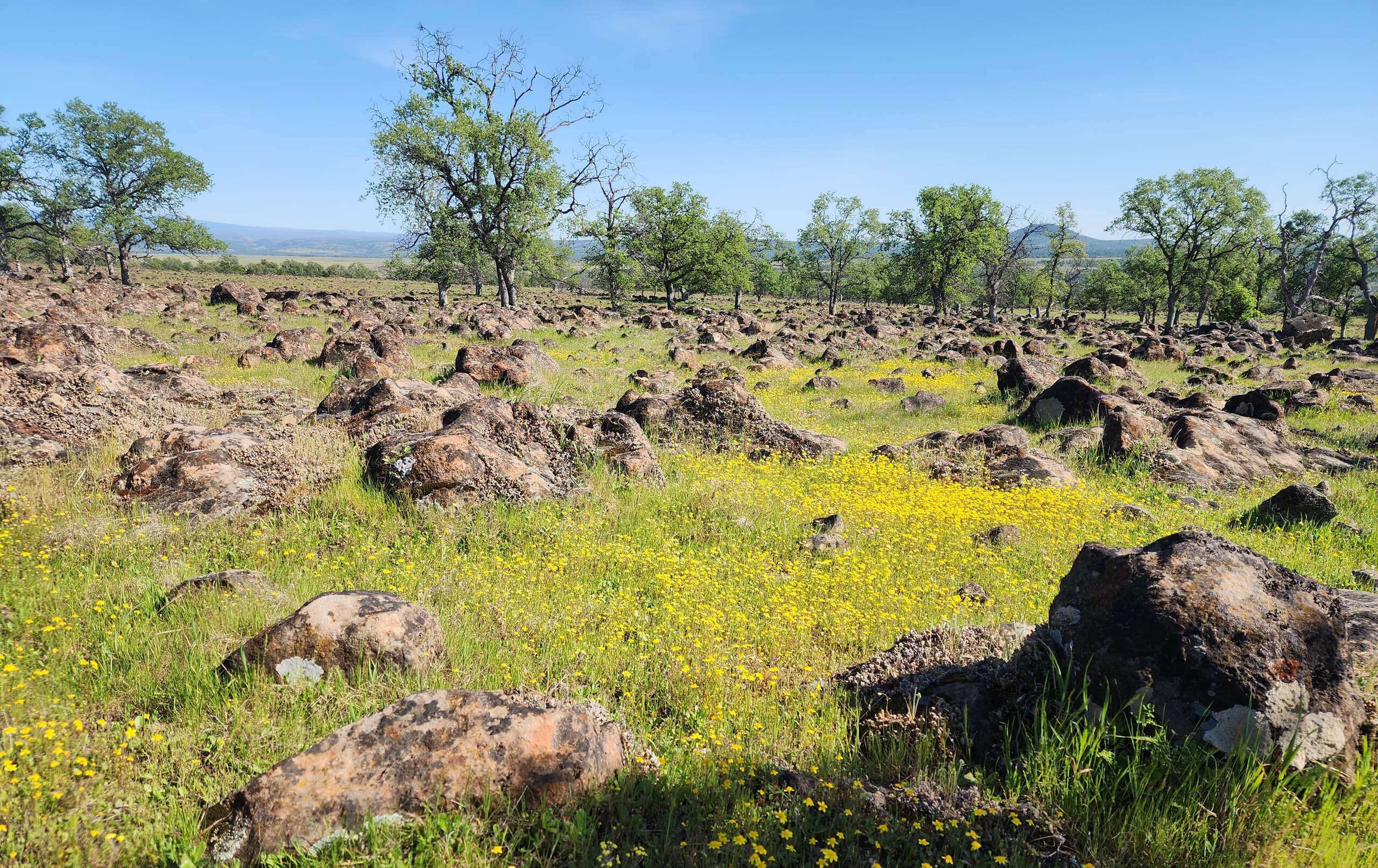 For a great synopsis of, and directions to, this particular access point into the Sacramento River Bend Recreation Area, please see Chris Harvey’s very informative article, Oak Slough Trailhead, Fall 2020. It may be a little too hot for most of us to hike in the height of summer, but the rest of the year, it’s spectacular. And there’s a bonus, too: the drive along Jellys Ferry Road is fabulous in the spring. Right now, between Bend and the Jellys Ferry bridge over the Sacramento River, there are puddles and carpets in shades of white through bright yellow. Gorgeous. But go now before this too-early heat dries it all up!