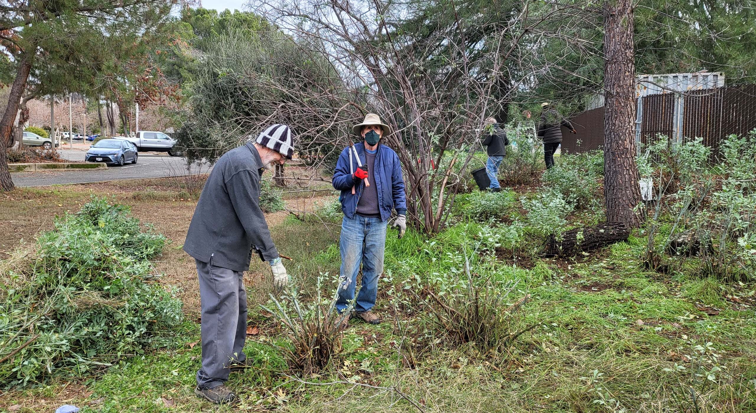On Monday, January 8, eleven skilled gardeners (Carole Crowe, Kay Gibson, Chris Gray, Linda Hernandez, David Ledger, Doug Mandel, Susan Mandel, Kris Shanley, John Springer, Janet Stortz, and Jeannie Tullis) methodically and thoughtfully pruned the matilija poppy (Romneya coulteri) and mugwort (Artemisia douglasiana) at the Matson Mowder Howe Celebration Garden (MMHCG) in Caldwell Park, Redding. We also fought back Himalayan blackberry (Rubus armeniacus), common morning glory (Ipomoea purpurea), and privet (Ligustrum sp.). Our goal is to work alongside Nature; hopefully the more thoughtful approach to gardening will produce more flowers and an improved habitat for all creatures.