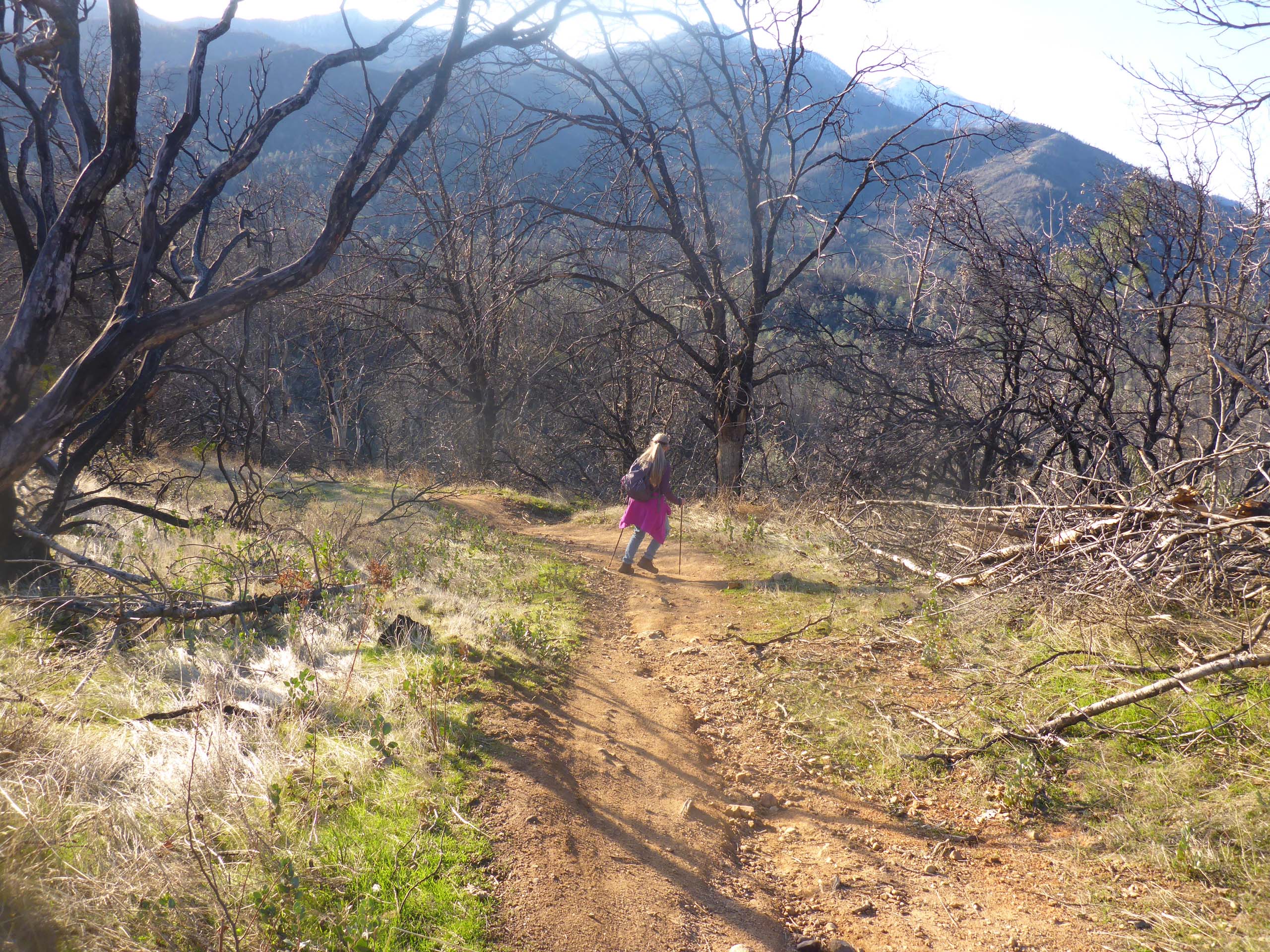 At the trails’ convergence, we began the ~0.75-mile ascent to Mule Mountain ridge on Cosmos Way. This trail ranges from very steep to insanely steep. Mountain bikers come barreling down this trail like nobody’s business. Trail etiquette has it that bikers are to give right of way to hikers, but these guys are moving so fast it is doubtful they could stop if they wanted to. We don’t press the issue and jump out of the way just as soon as we hear them coming.