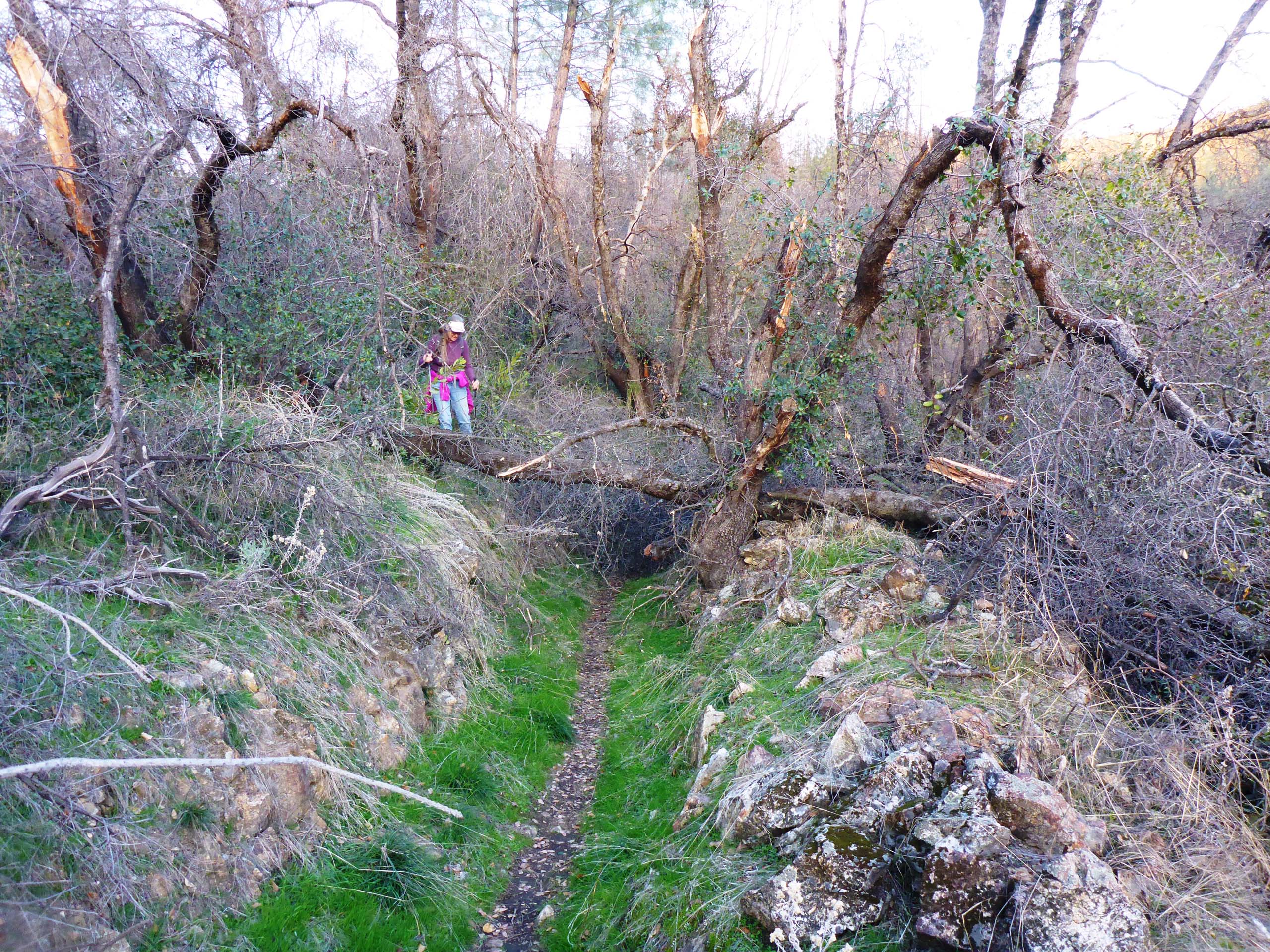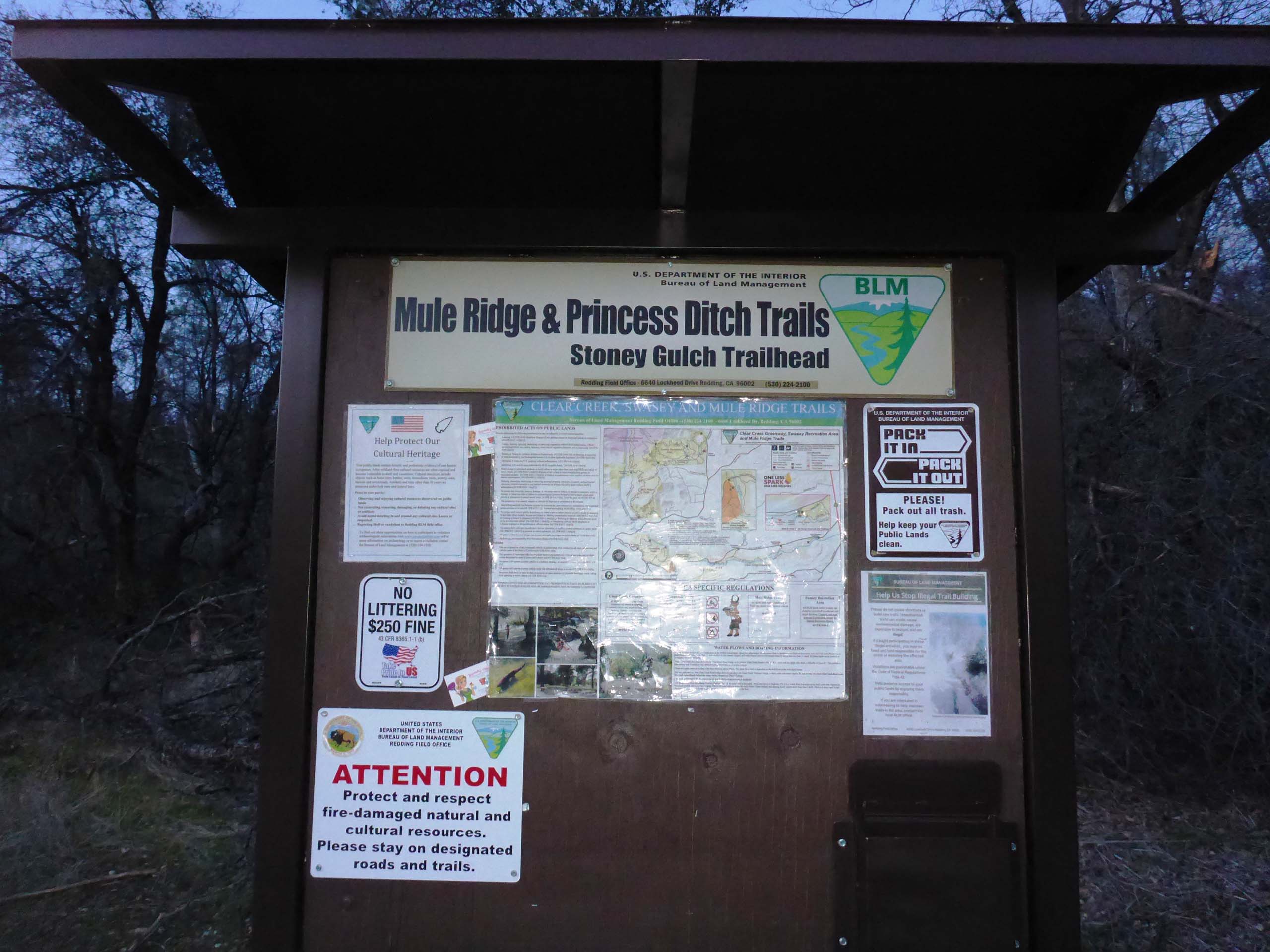 In hopes of finding pre-spring blooms, we thought we’d see what was happening around Mule Mountain, in Redding’s Swasey Recreation Area. As this popular recreation area can be very busy, especially on fine-weather weekends, we chose to start from the lesser used Stoney Gulch Trailhead on Muletown Road, where the pavement turns to dirt. Good choice. There was only one other vehicle at Stoney Gulch Trailhead when we arrived, versus about a dozen at Oak Knoll Trailhead, which is much bigger and closer to Placer Road.