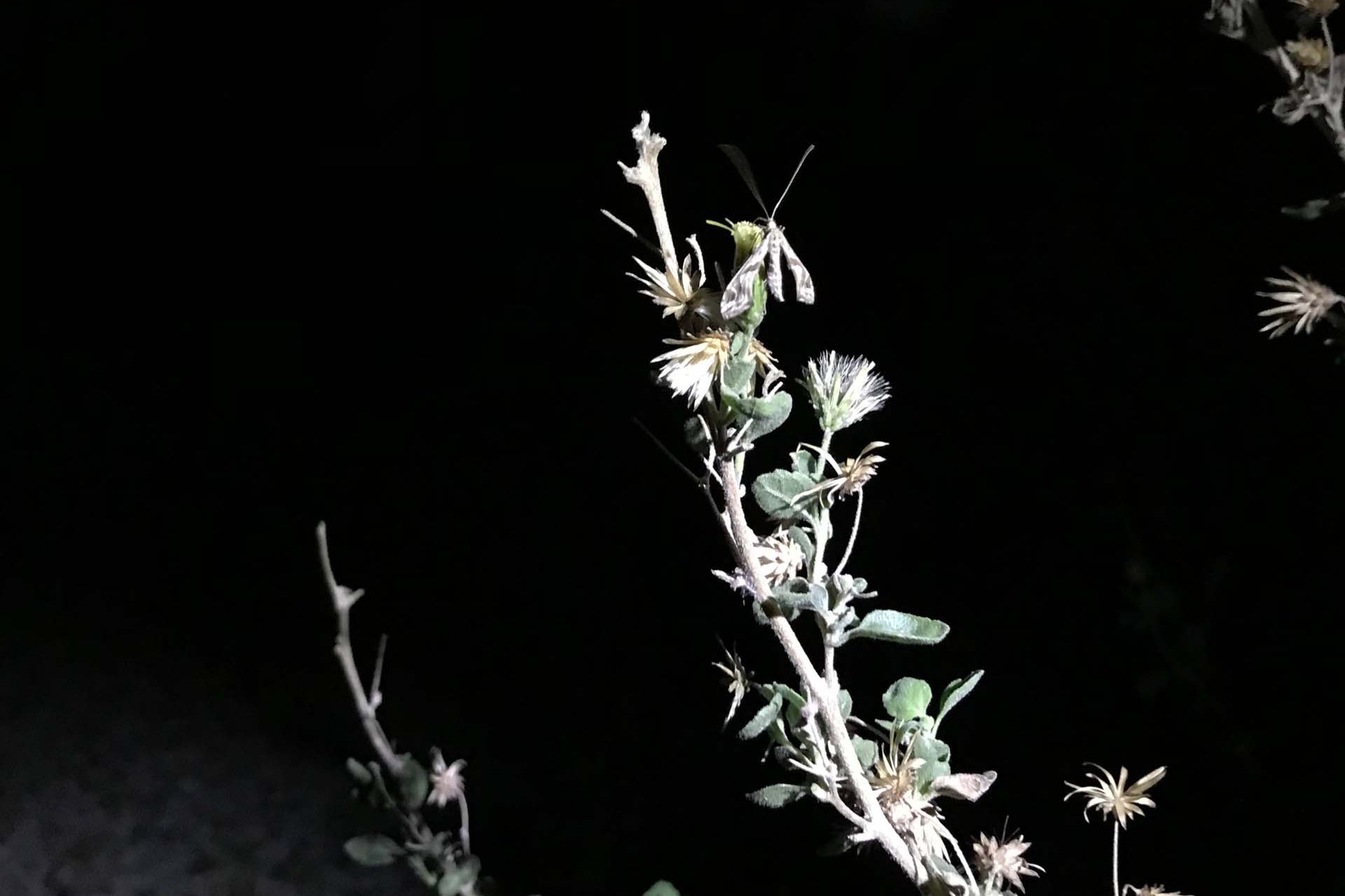 My California brickellbush, Brickellia californica, is fragrant at dusk, and attracts various small moths. I had so much fun sitting in the dimming light, stalking tiny moths to photograph! This moth is more or less wishbone-shaped. I am so pleased that my native garden is supporting native insects. Photos taken with cellphone and flashlight on September 25, 2021, by Susan Libonati-Barnes.