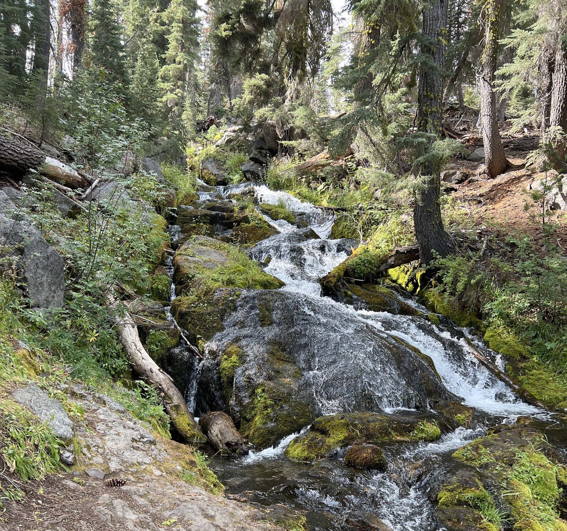 While few wildflowers were in bloom, we did see a some flowering alpine aster, marsh marigolds, arrowleaf senecio, Bloomer’s rabbitbush, angelica, yampah, pearly-everlasting, scarlet gilia, and yarrow. Due to its bright red fruit, we noticed a western mountain ash just off the trail, a plant we hadn’t noticed in previous field trips in years past. Along the way we identified the six conifers found along the trail: red fir; white fir; mountain hemlock; and lodgepole, Jeffrey, and western white pine.
