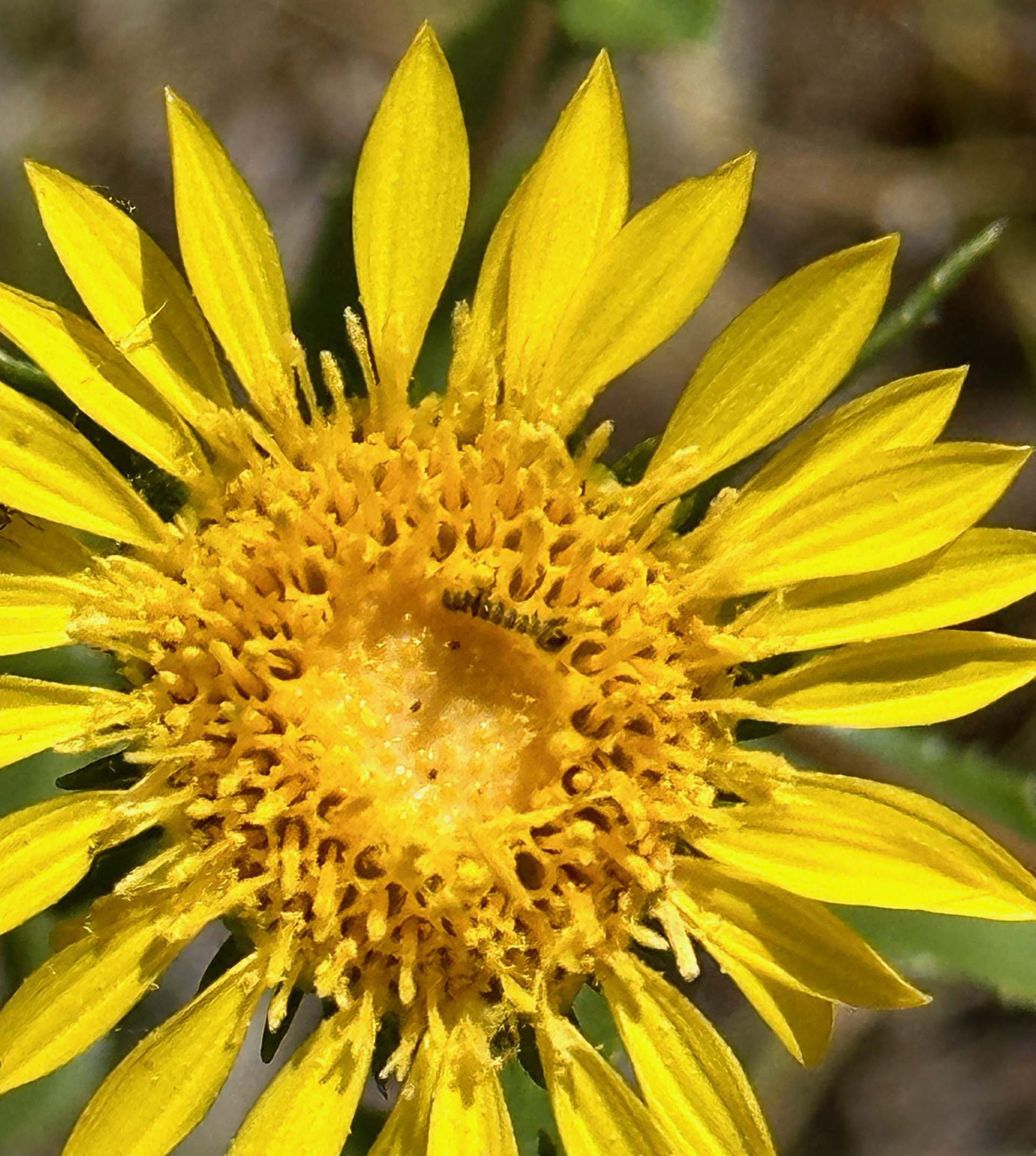 Close-up of a gumhead, Grindelia camporum, blooming on Amy’s property.