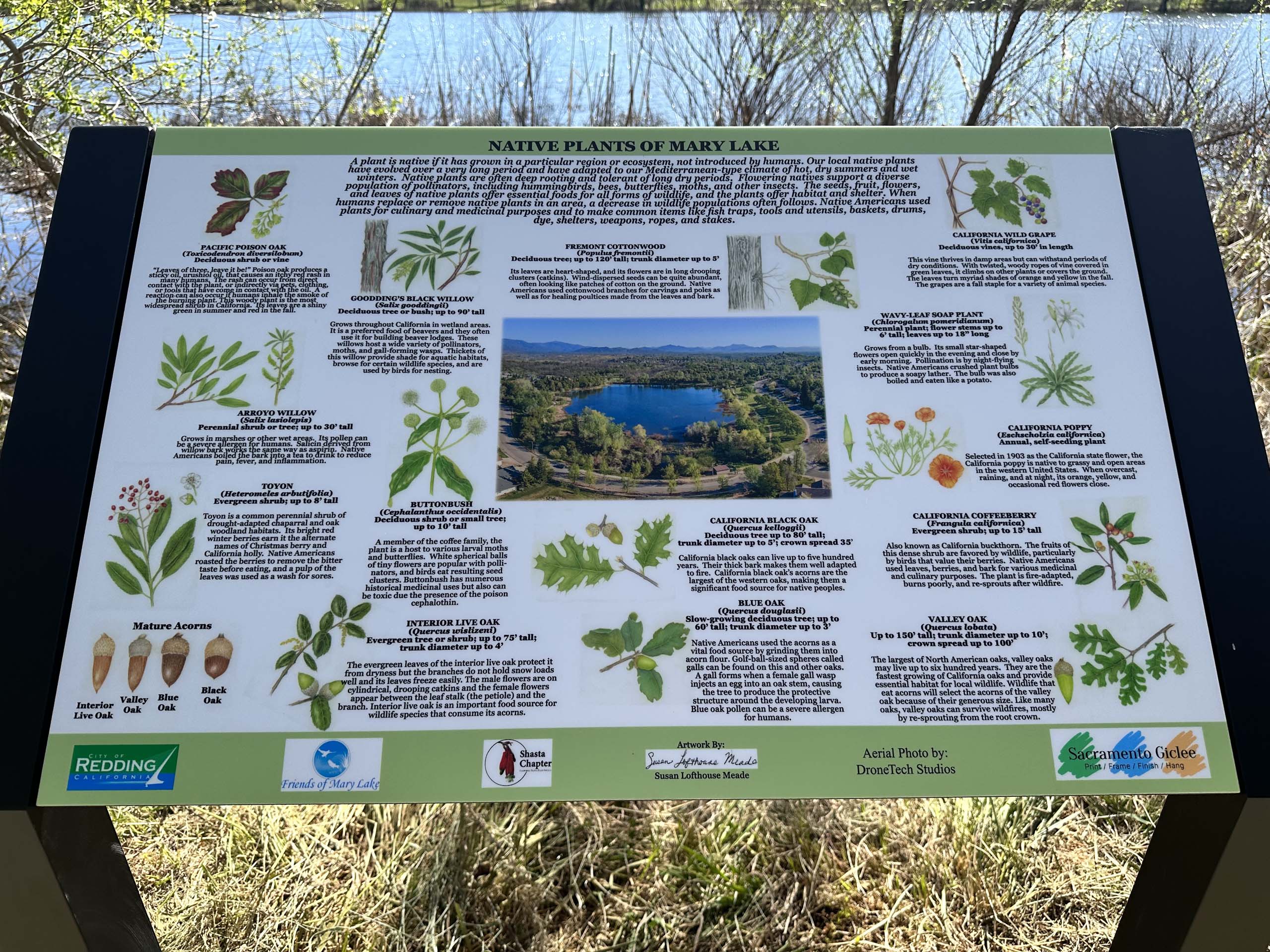 Shasta Chapter had its first pre-pandemic in-person meeting on April 20, with a great turn out. Laura Brodhead and Brooke Thompson of the Bureau of Land Management spoke to us about the importance of riparian forest and discussed in detail a large restoration project, Rancho Breisgau, that they have been working on and hope will be funded in May. Hopefully, you were able to attend the Earth Day Festival organized by the Shasta Environmental Alliance. It was wonderful to interact with the community again and see so many people out and about celebrating our planet on such a beautiful day. The Friends of Mary Lake had a sign dedication that I attended. If you get a chance, go take a walk and admire their new sign on native plants that are found around the lake—beautifully illustrated by Susan Lofthouse Meade and edited by Shasta Chapter CNPS members.
