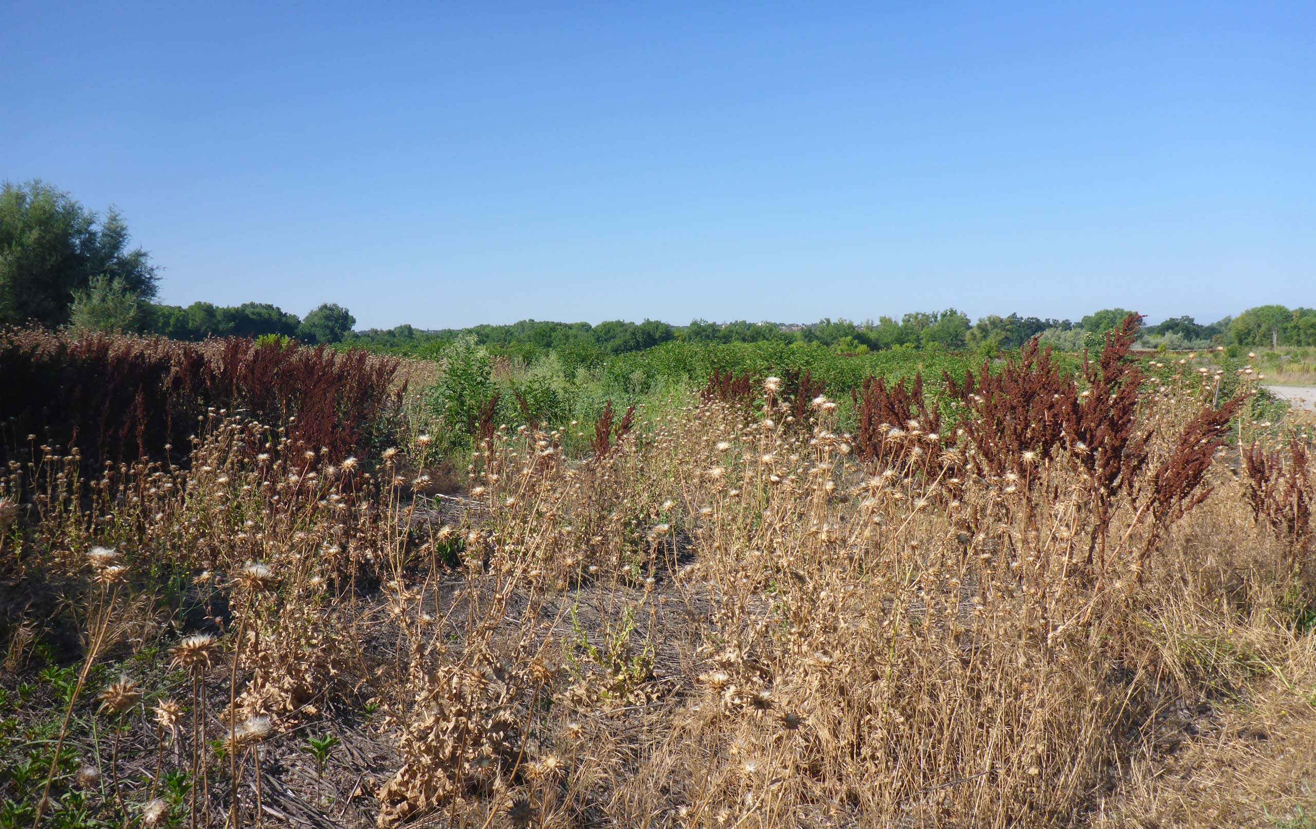 Despite the fields of weeds, there are many healthy trees in this abandoned farmland, including tall Fremont cottonwoods; black, sandbar, and arroyo willows; box elders; and several healthy blue elderberry shrubs. BLM has found the endangered Valley Elderberry Longhorn Beetle on the property.