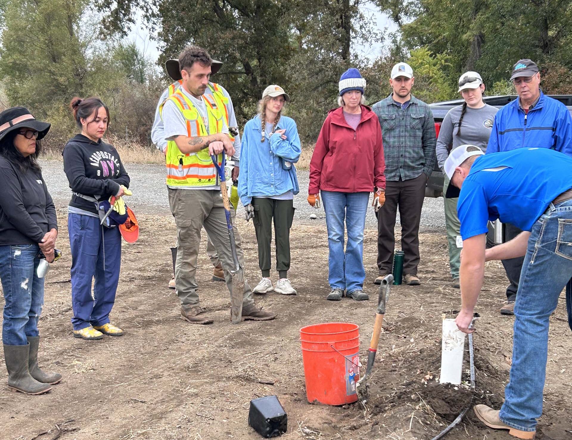 This expertly prepared site in the floodplain of the Sacramento River has deep loamy soil that is as easy to plant in as your own raised bed garden boxes. Because of all the pre-planting preparation, a relatively small number of volunteers from Redding, Red Bluff, Chico, and Davis were able to plant over 5,000 young riparian trees and shrubs! Shasta Chapter CNPS members came out to help, including our current nursery manager and our Shasta College intern. It was a pleasantly cool day and the digging was so easy!