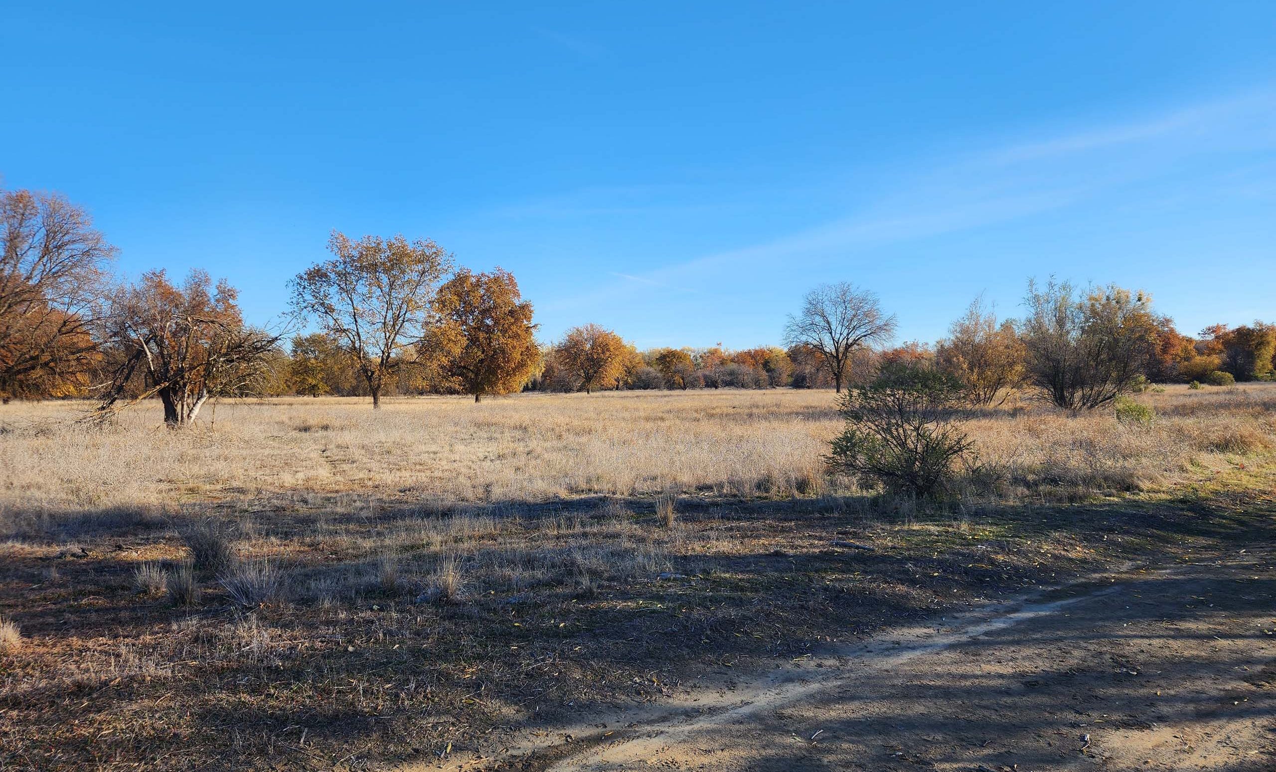 Here’s a lovely fall-colors walk for you: trails in the Rio Vista Unit of the Sacramento River National Wildlife Refuge. We found immense valley oaks, cottonwoods, Oregon ashes, willows, and box-elders vibrant in their fall attire, many draped in vines of the jewel-toned California grape. Stunning! Trails took us through dense vegetation growing under high canopies, along sparsely treed open floodplain, and atop a riverbank levee.