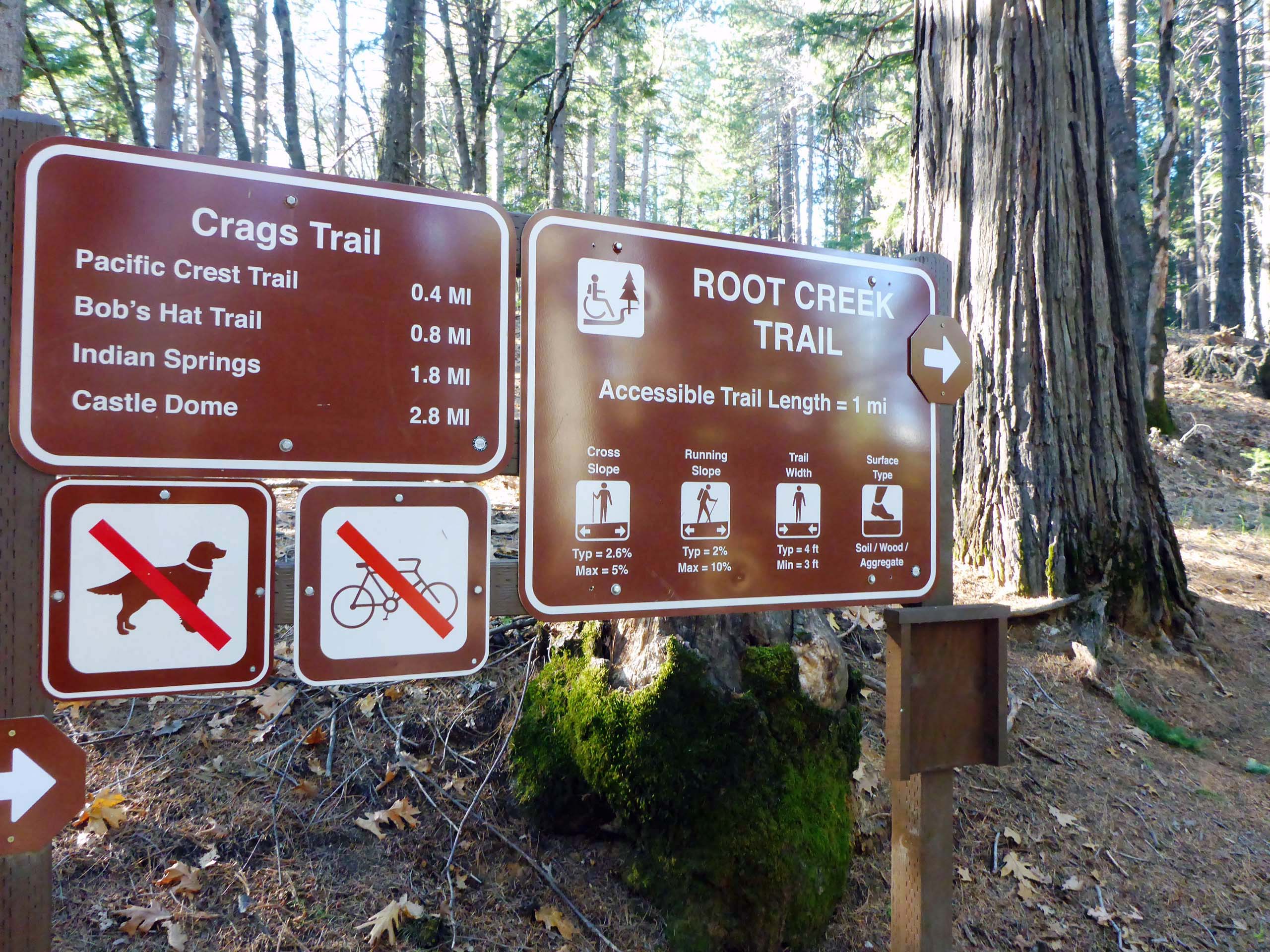 Signage at Root Creek Trailhead. Castle Crags State Parks boasts having 28 miles of hiking trails. November 28, 2021. Photo by Don Burk.