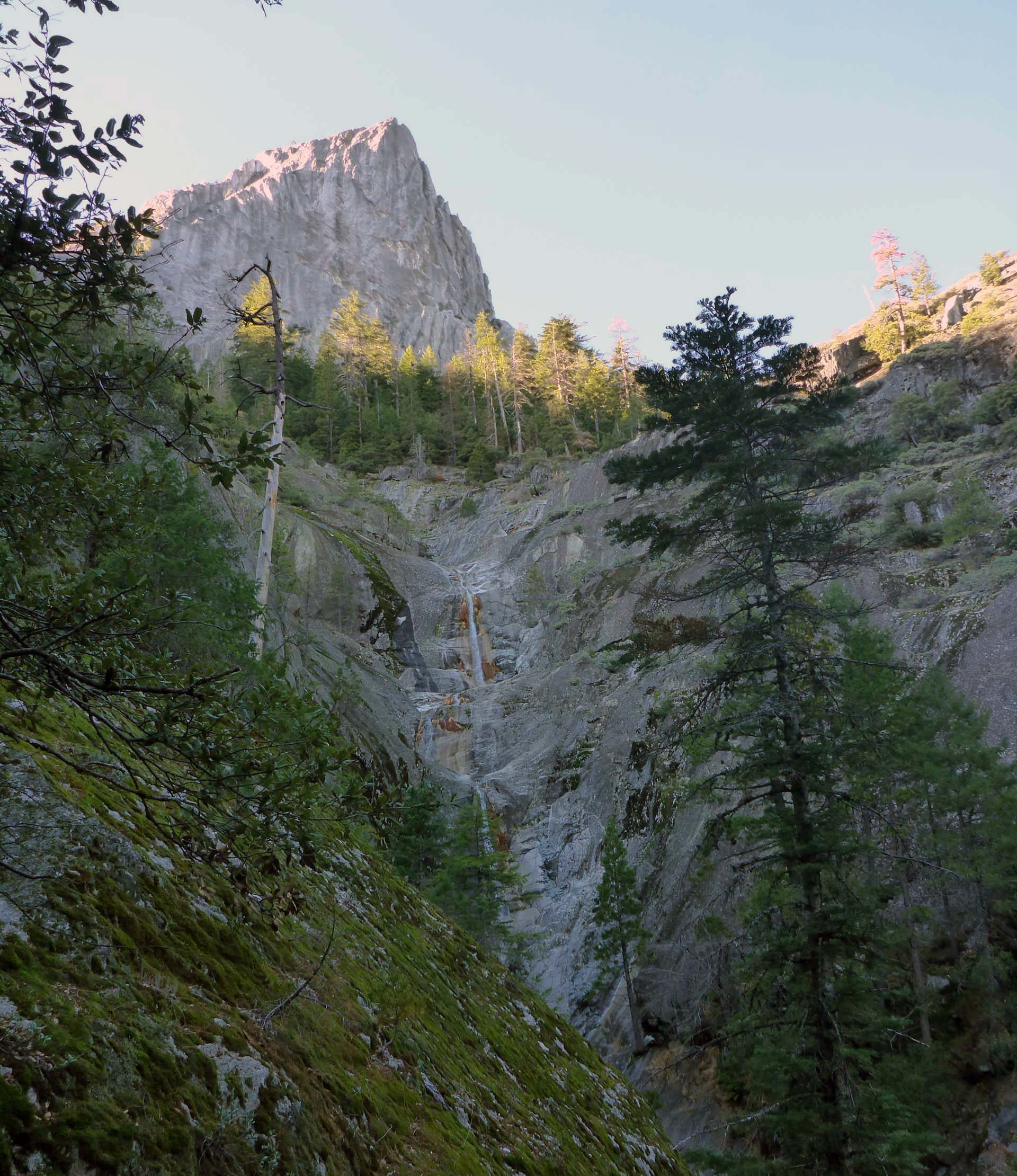Root Creek Falls, under Castle Dome, Castle Crags State Park. The Park’s brochure features a very similar photo (but much better) on its cover, taken when the stream volume was much greater. November 28, 2021. Photo by Don Burk.