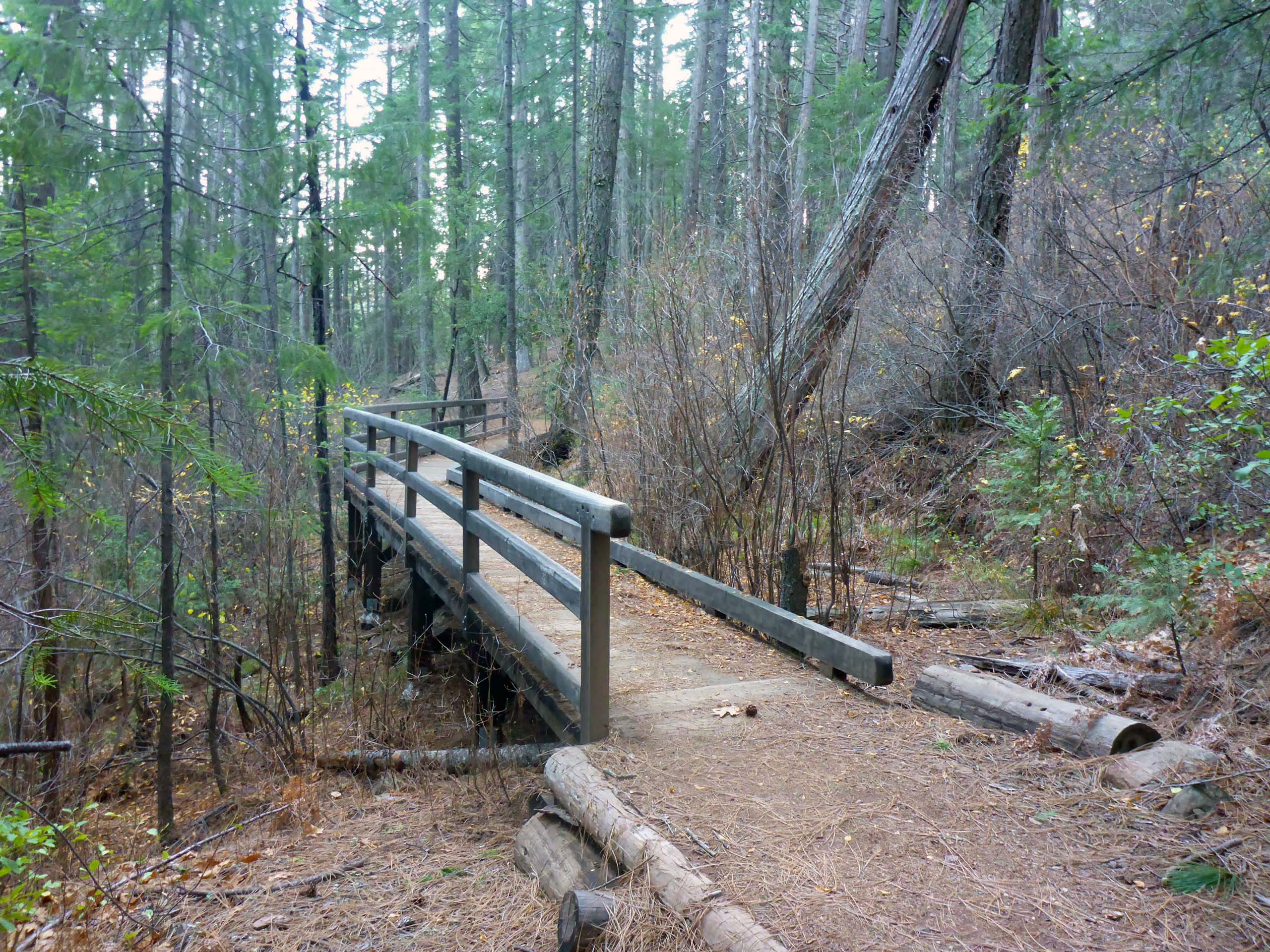 One of two or three well made bridges along Root Creek Trail, Castle Crags State Park. This bridge takes one over a seepy area, rather than a stream. November 28, 2021. Photo by Don Burk.