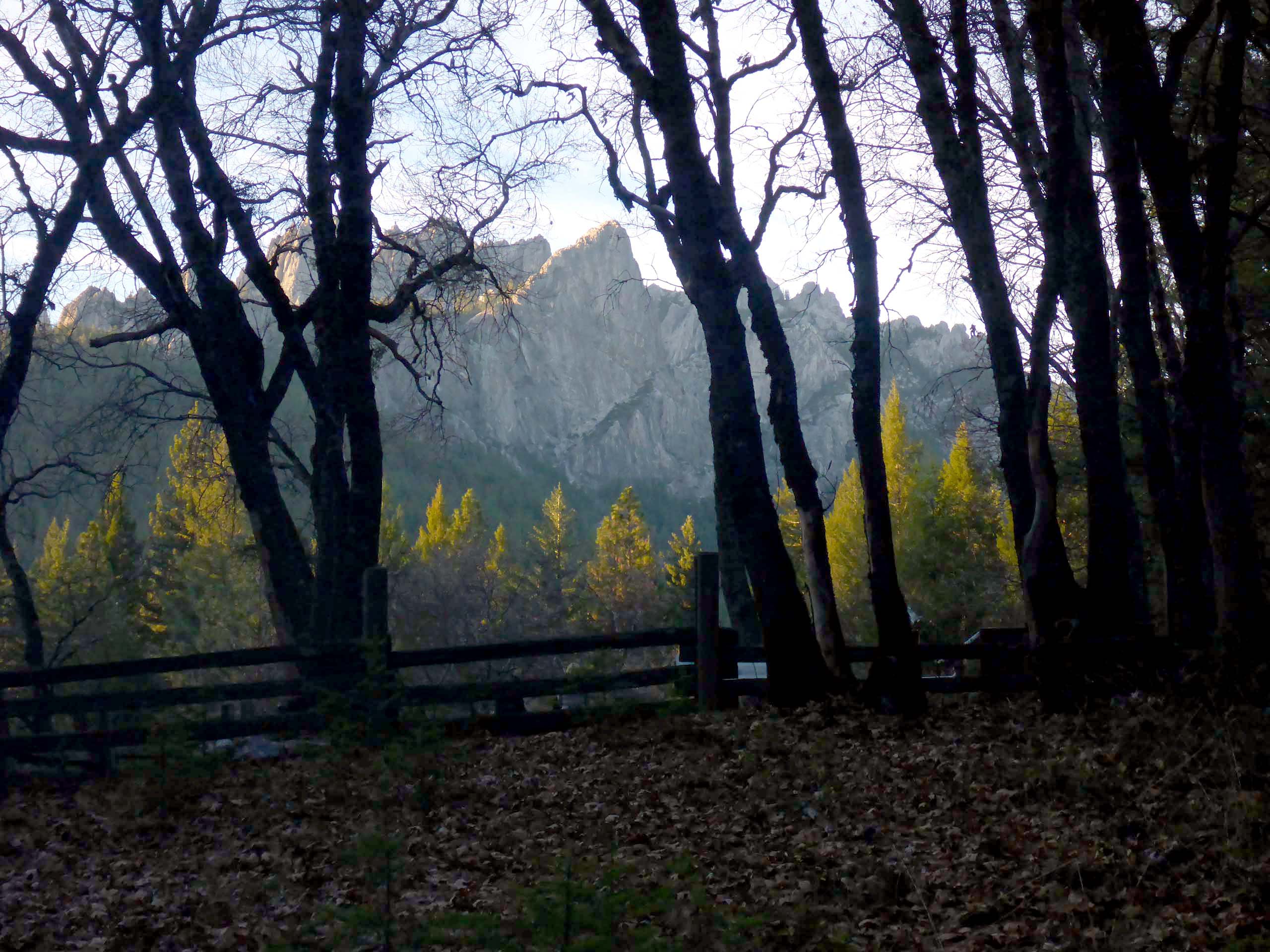 Castle Crags at sunset, from Vista Point Trail on the approach to the viewing area. November 28, 2021. Photo by Don Burk.
