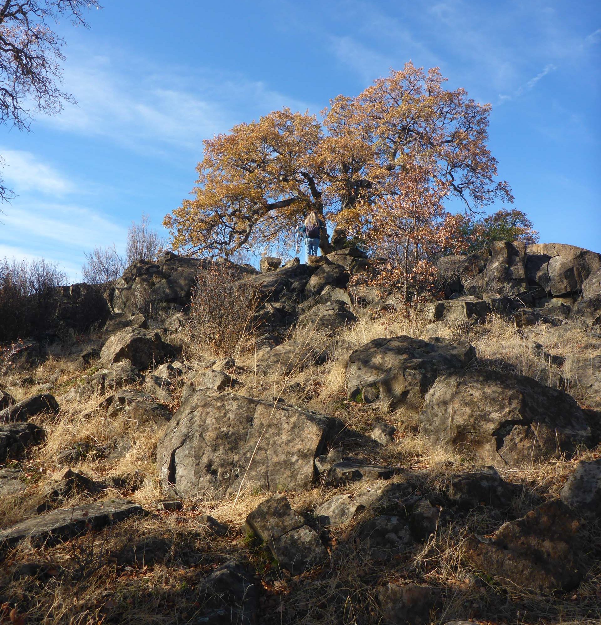 To get to this special place, go north on the Yana Trail from Perry’s Riffle Trailhead (at the very end of Bend Ferry Road, Bend, Tehama County) for about 2.7 miles to where the trail splits.