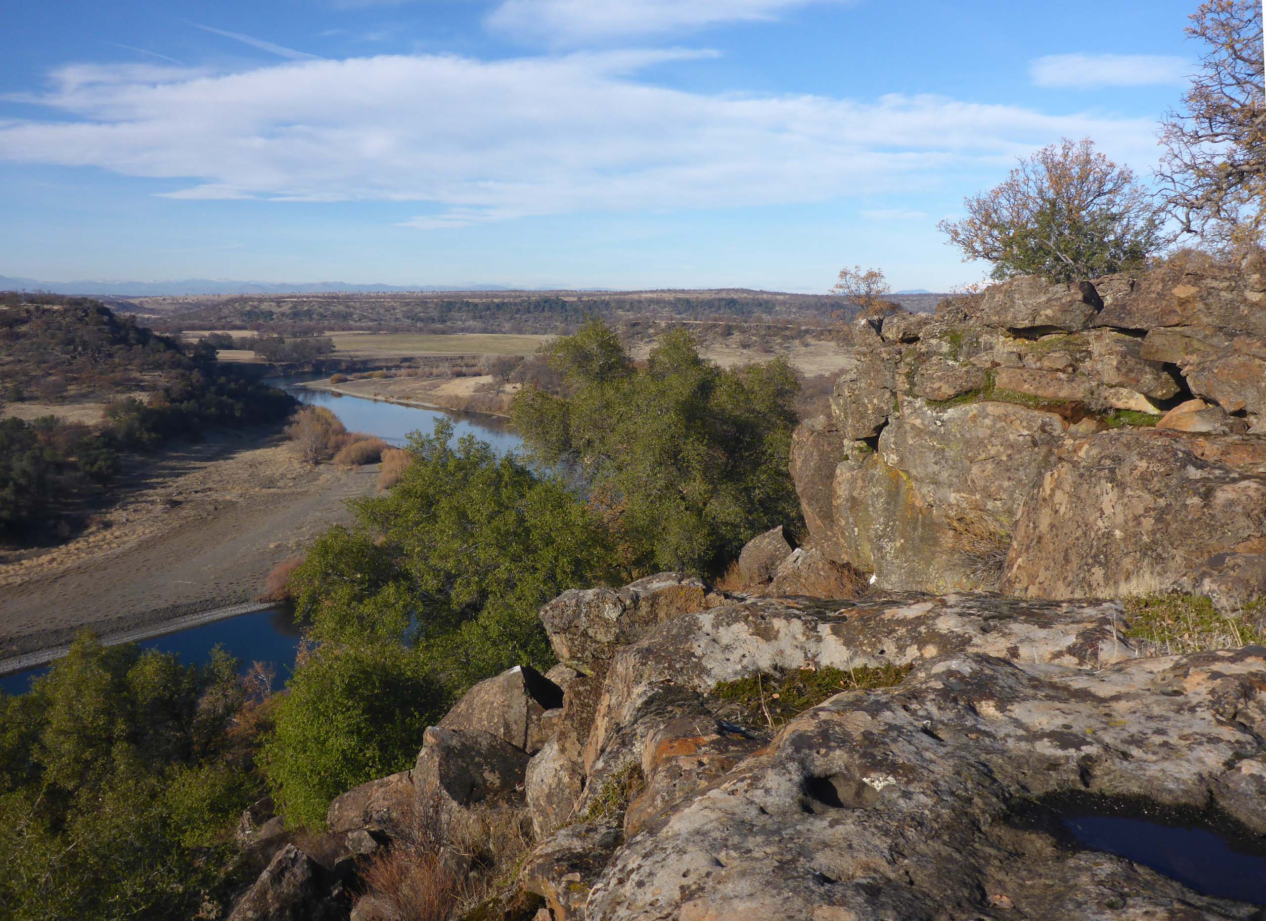 Sunday’s hike began on the Yana Trail at Perry’s Riffle, but the destination was off-trail: a promontory above the Sacramento River, about a mile south of Massacre Flat.