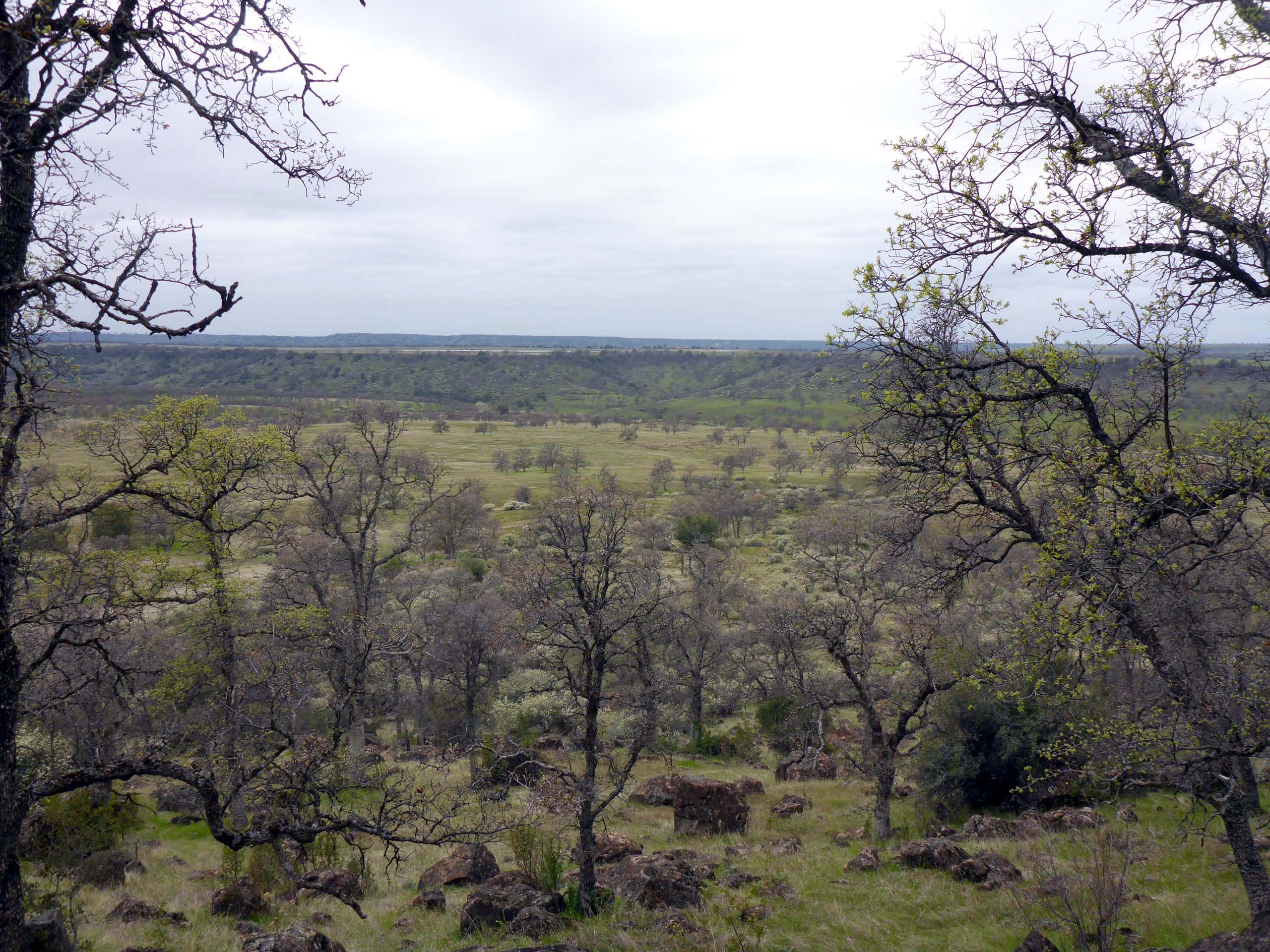 We had no real goal or expectations; we simply followed our nose and went where we pleased. Because cross-country exploration is encouraged here, there are many unnamed and unmarked trails throughout this vast area that are fun to follow. Which is exactly what we did. Under leaden sky and buffeted by chill winds, we ventured several miles out until we found ourselves on a bluff above Paynes Creek. That’s when the rain finally came, and where we turned around.
