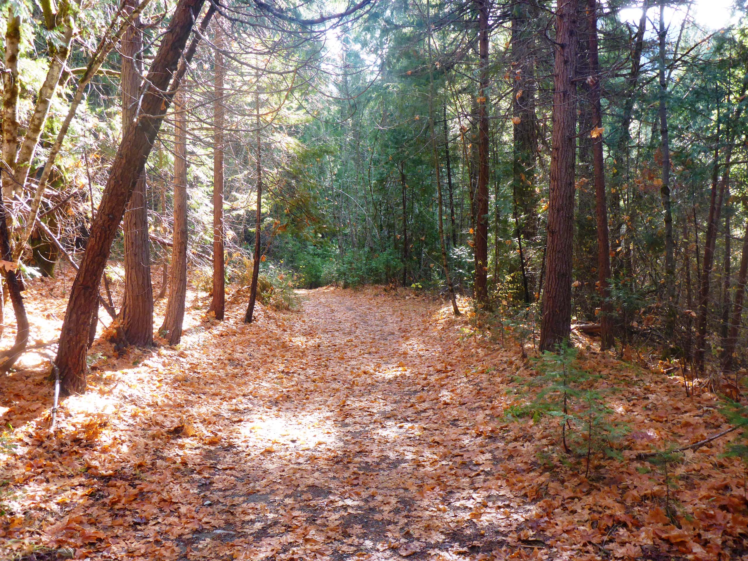 And it probably would have been, but we were a good three weeks too late. Very few deciduous trees or shrubs had any leaves left on them. Instead, the trail was strewn with the oranges, bronzes, yellows, and golds of fallen leaves.