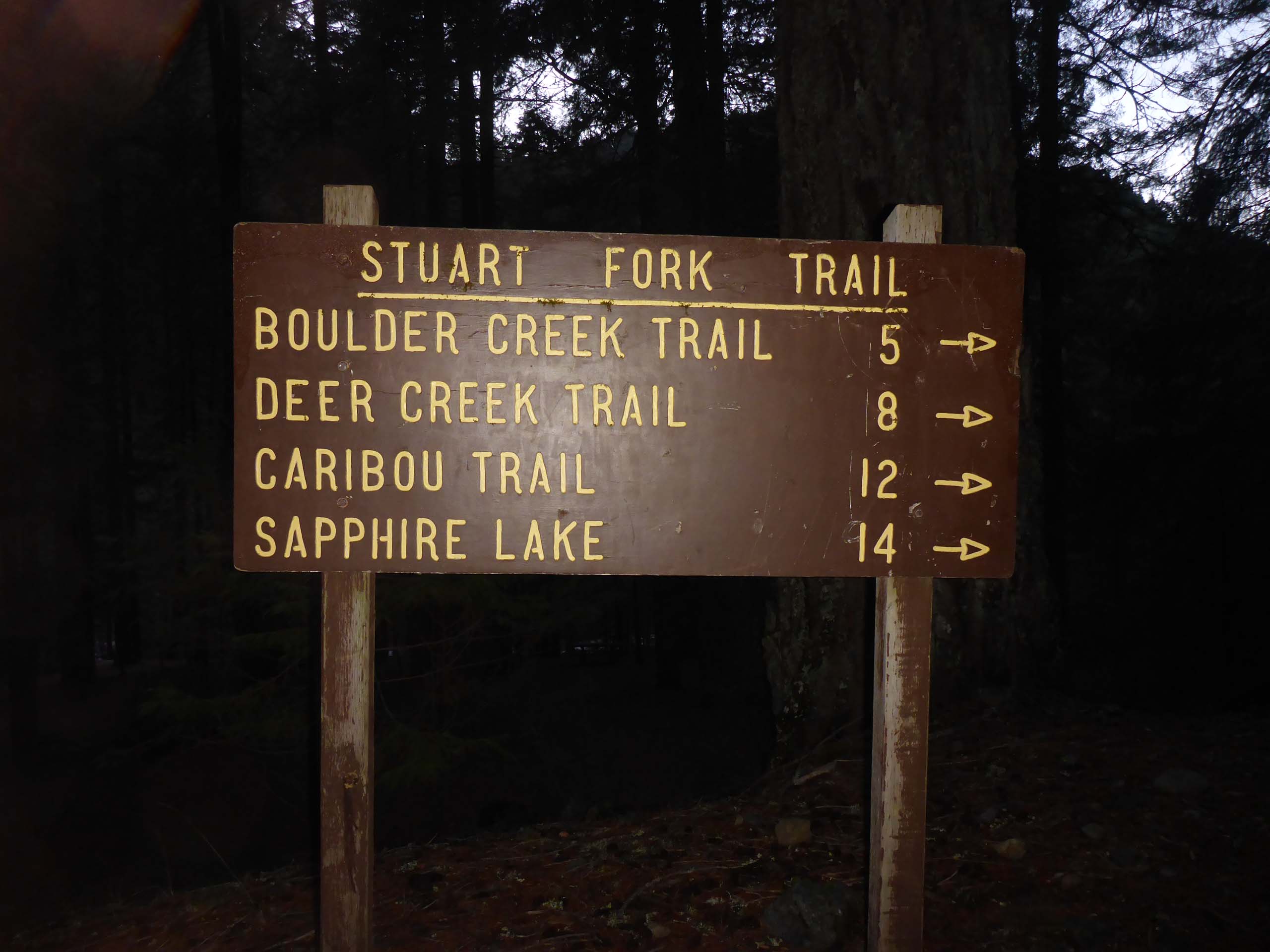 This sign is just down the trail, close to the Stuart Fork Trailhead. Stuart Fork Trail is 14 miles long, and is the starting point to many extraordinary wilderness destinations in the Trinity Alps. November 29, 2020. Photo by Don Burk.