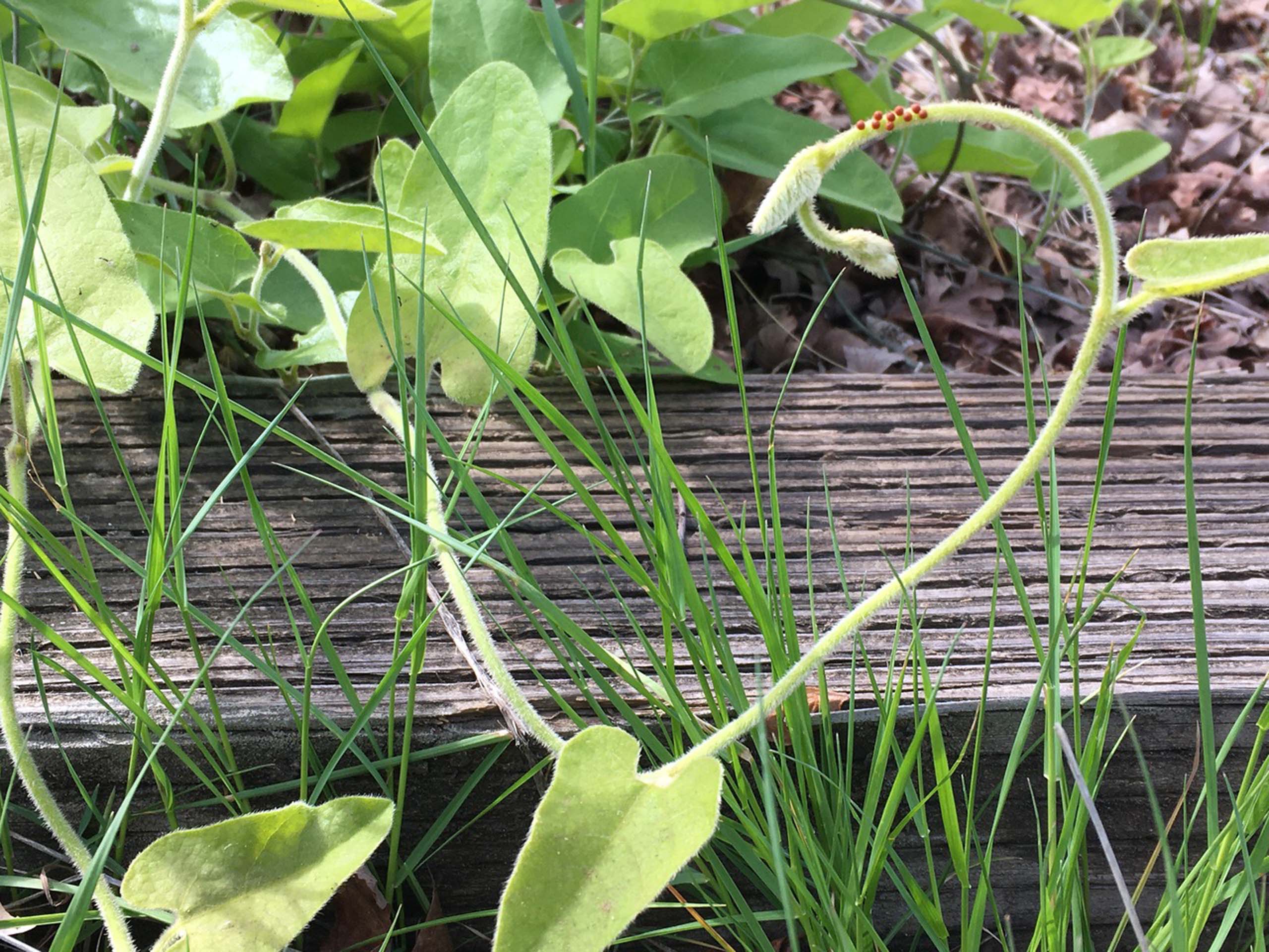 California pipevine, Aristolochia californica, hosting a few swallowtail butterfly eggs. March 27, 2020. Photo by MaryAnn McCrary.