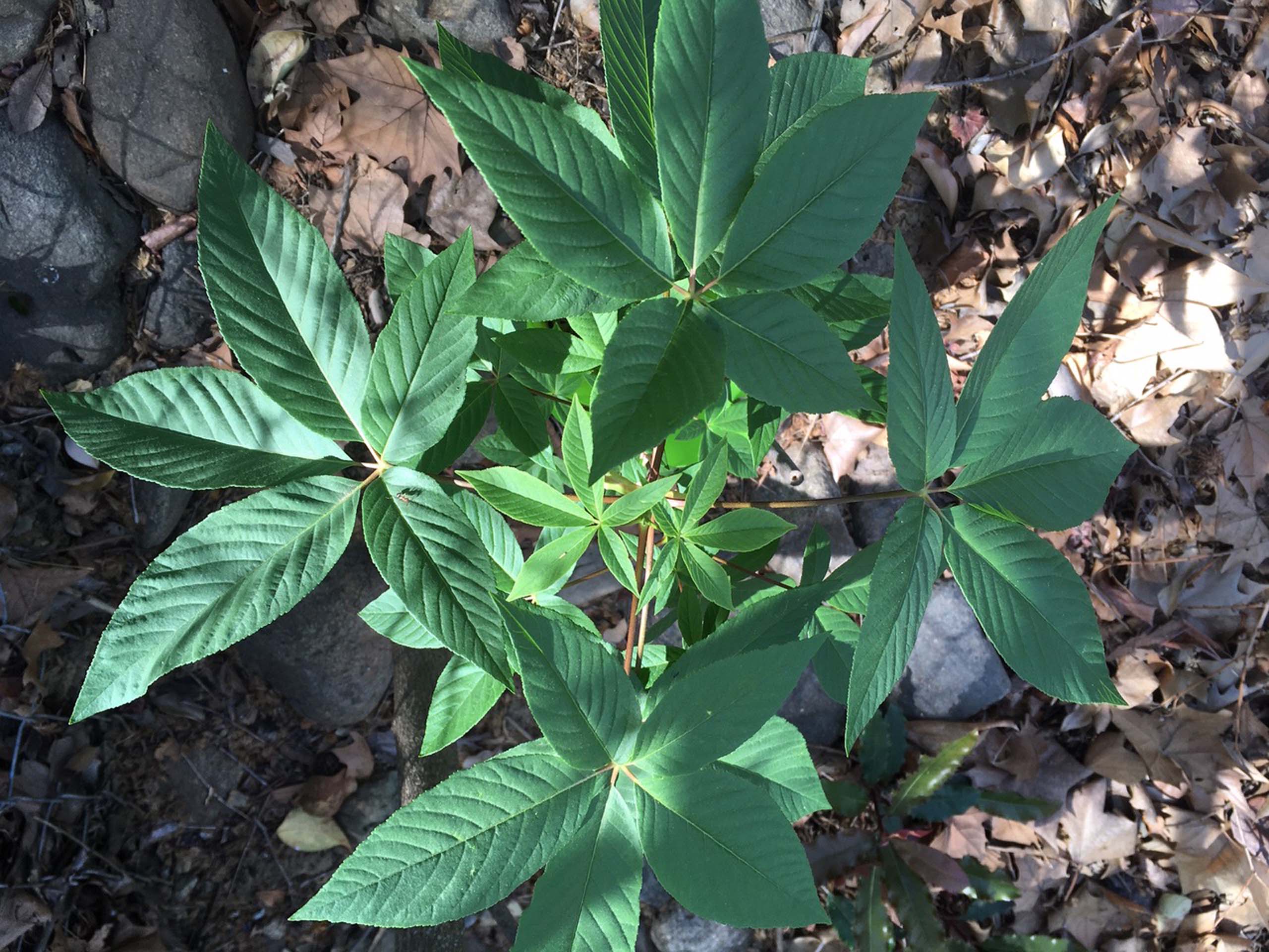 A young California buckeye, Aesculus californica, on March 24, 2022. Photo by MaryAnn McCrary.