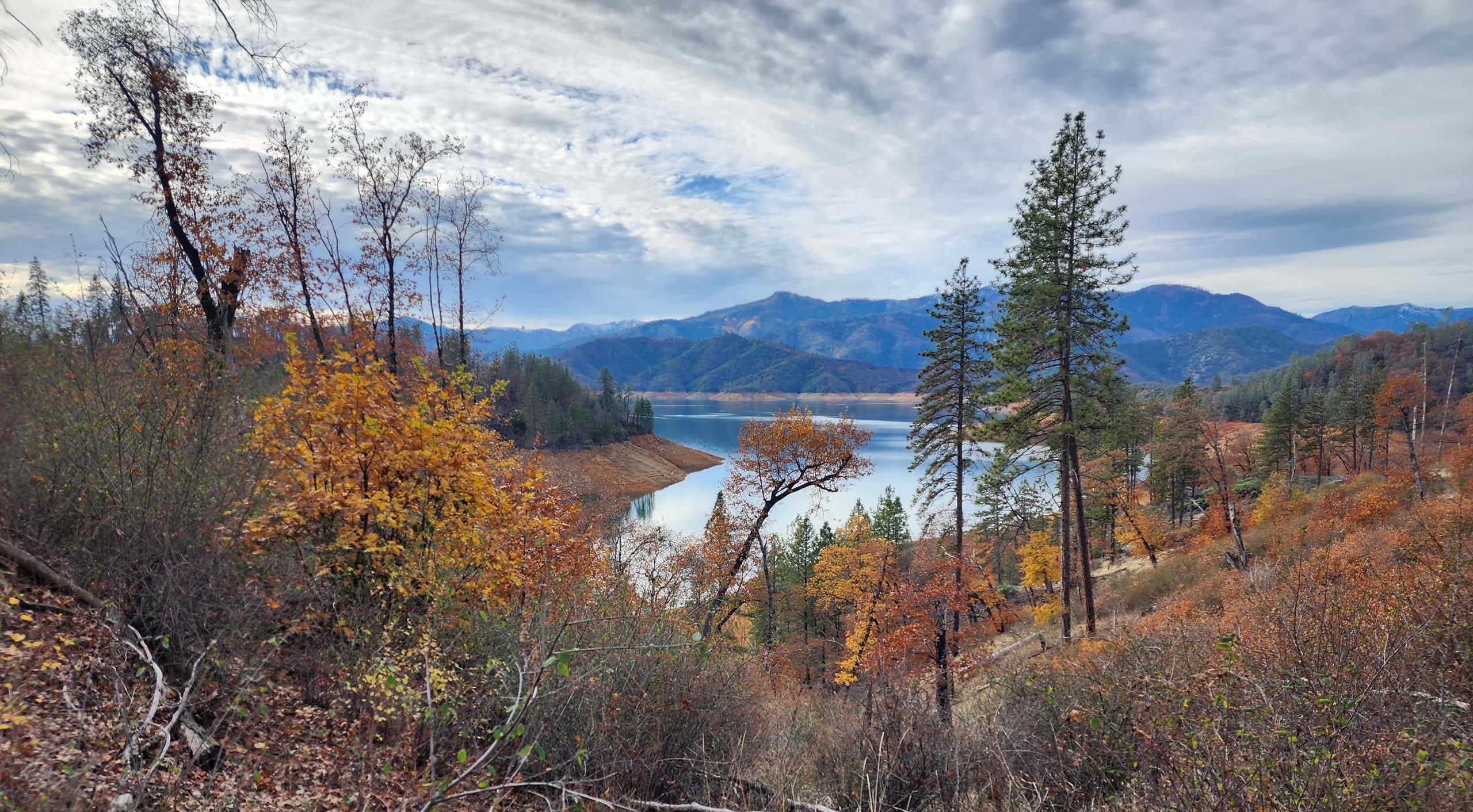 We very often have this underused trail just north of Redding all to ourselves, and this Sunday hike was no different. No other cars were at the trailhead, nary a soul was on the trail, and not a boat was in sight on Lake Shasta. Even Packer’s Bay Marina had minimal activity. Only as we started the trudge up the road, from the lower trailhead to the upper trailhead at the end of our hike, were we joined by a couple of hikers and their dogs who were just getting started.