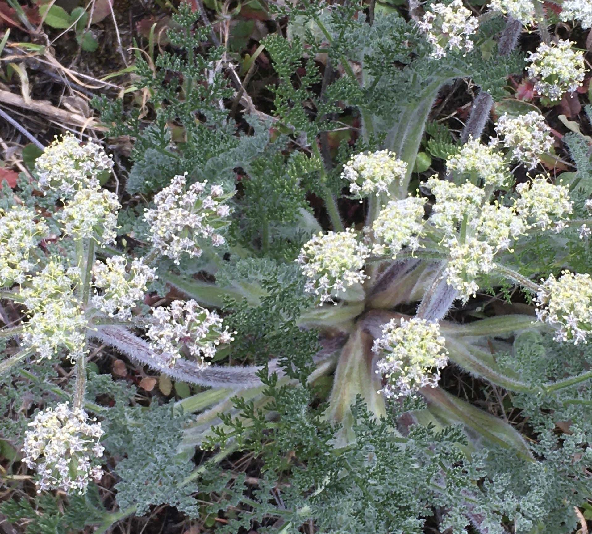 It grows with ookow (Dichelostemma spp.) and naked buckwheat (Eriogonum nudum) in rocky soil. Anise swallowtail (Papilio zelicaon) caterpillars will consume the foliage without harming the plant on their way to becoming butterflies. ~MaryAnn McCrary