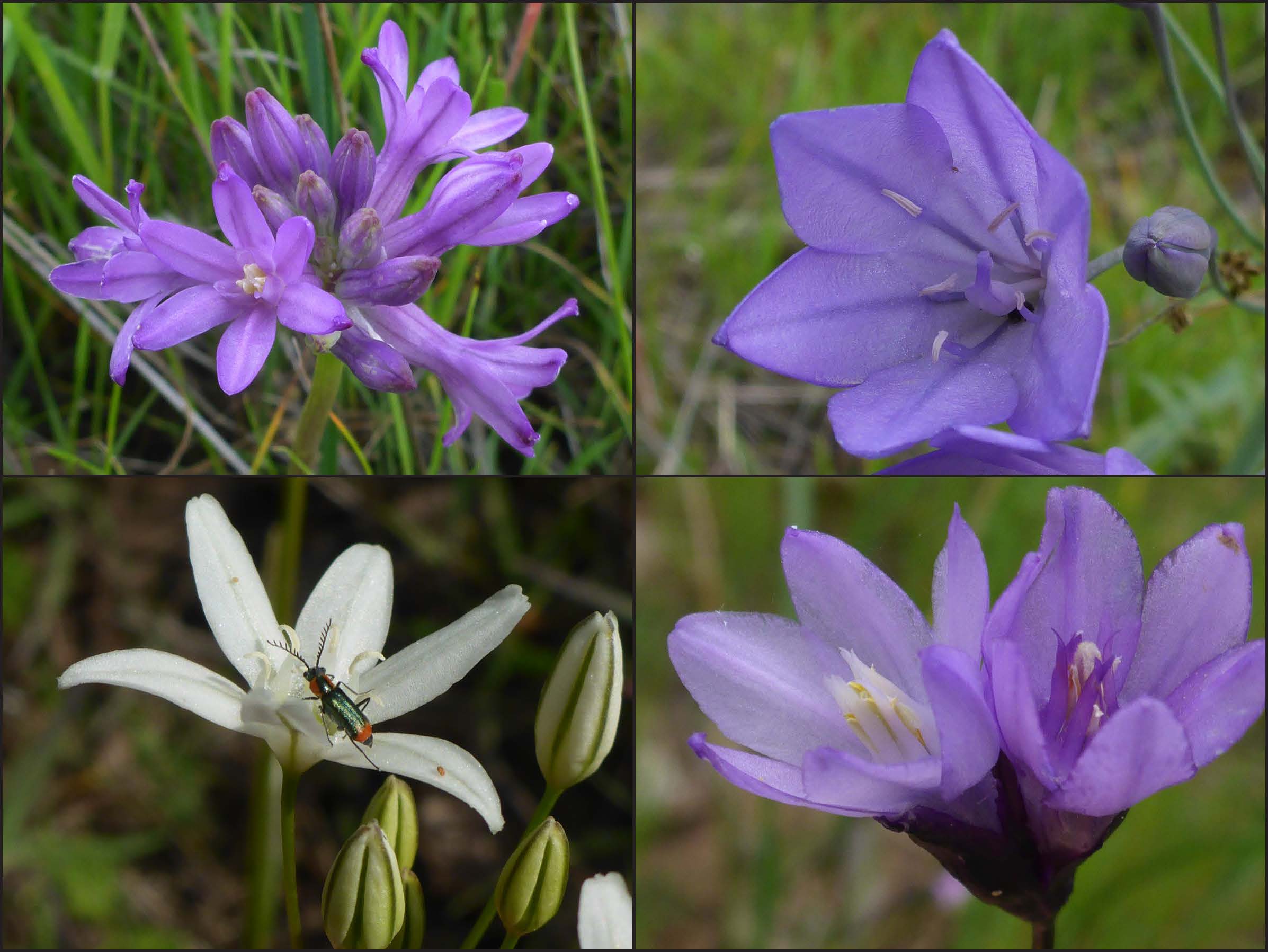 We seemed to have hit the peak of Themidaceae (Brodiaea Family) flowering season, for here, without going off trail, you can see and compare four different brodiaeas in bloom: white hyacinths, round-toothed ookows, bluedicks, and Ithuriel’s-spears. Although we did not see it on this hike, glassy wild hyacinth is also blooming in the area, and at least three other species (California brodiaea, bluestars, and garland brodiaea) should be blooming soon if they aren’t already.